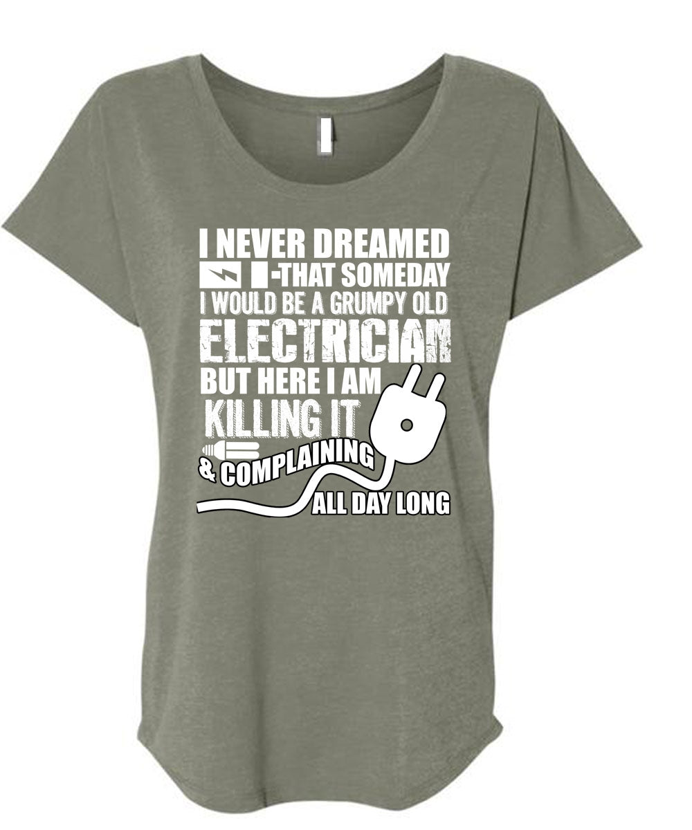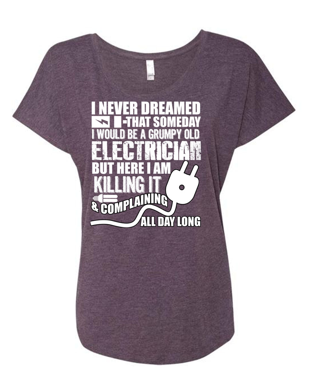 Grumpy Old Electrician T Shirt, I Never Dreamed T Shirt, Cool Shirt (Ladies' Triblend Dolman Sleeve)