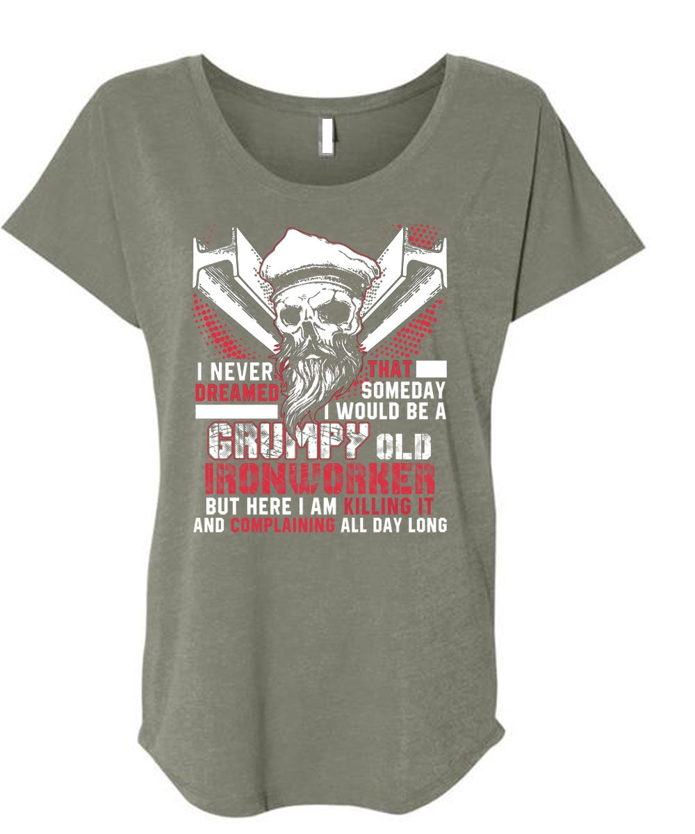 Grumpy Old Ironworker T Shirt, I Never Dreamed T Shirt, Cool Shirt (Ladies' Triblend Dolman Sleeve)