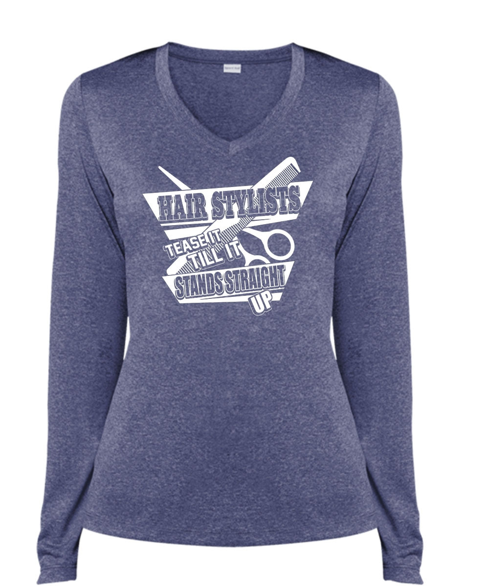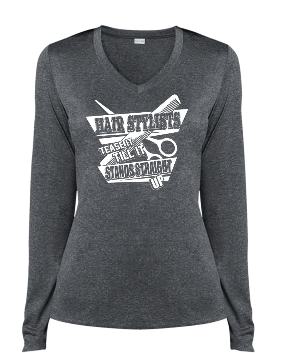 Hair Stylist Tease It T Shirt, Being A Hair Stylist T Shirt, Cool Shirt (Ladies LS Heather V-Neck)