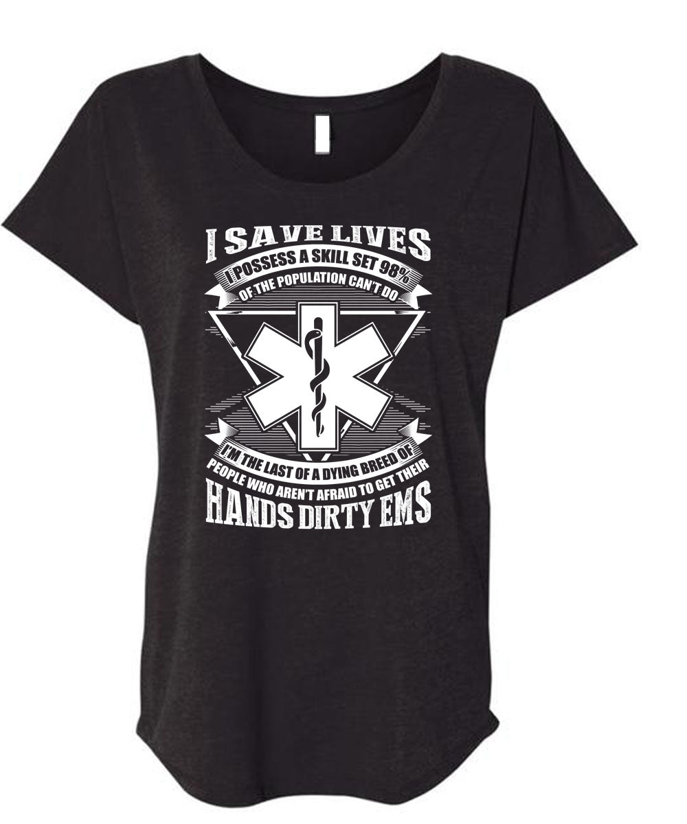 Hands Dirty EMS T Shirt, Being A Doctor T Shirt, Cool Shirt (Ladies' Triblend Dolman Sleeve)