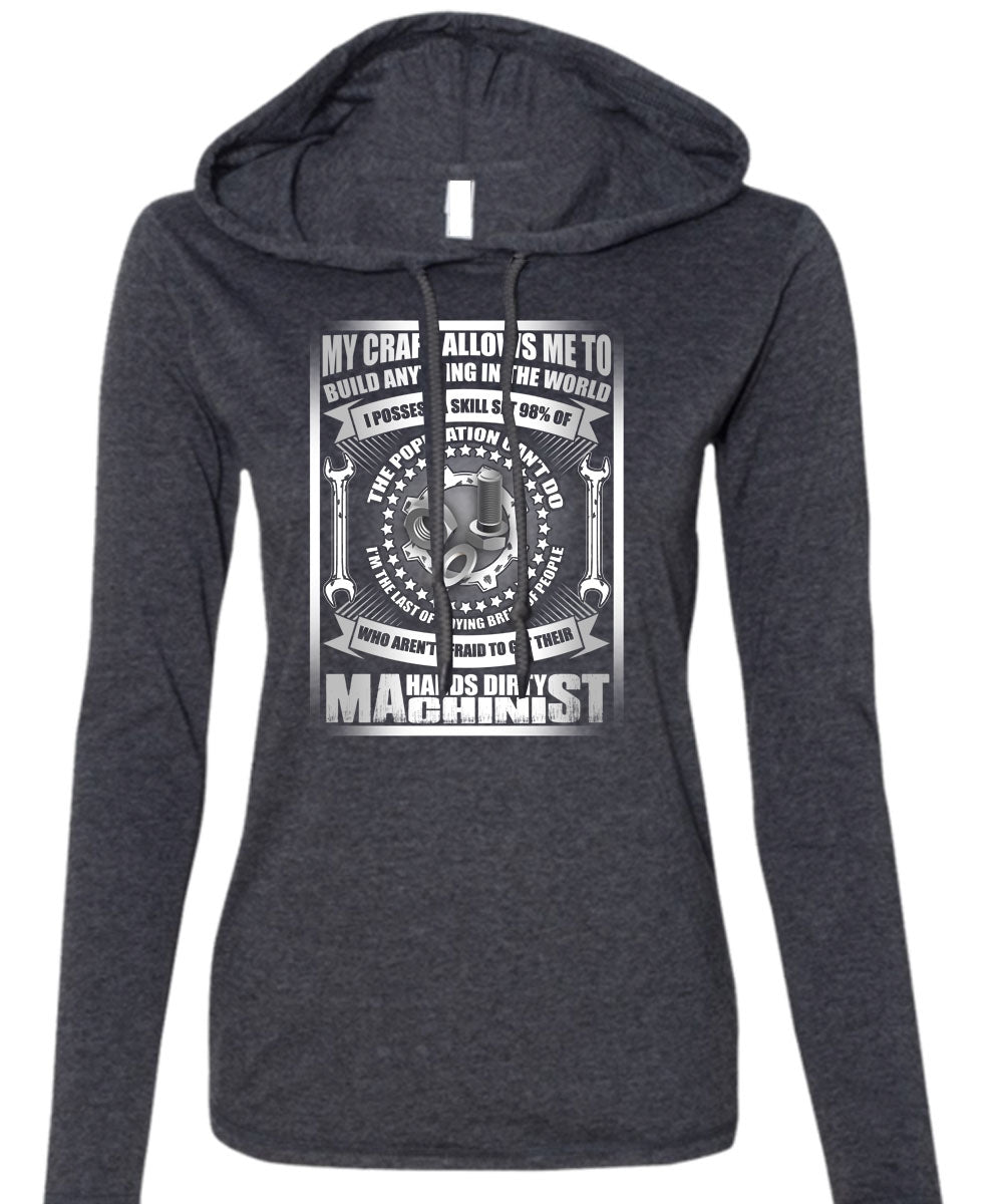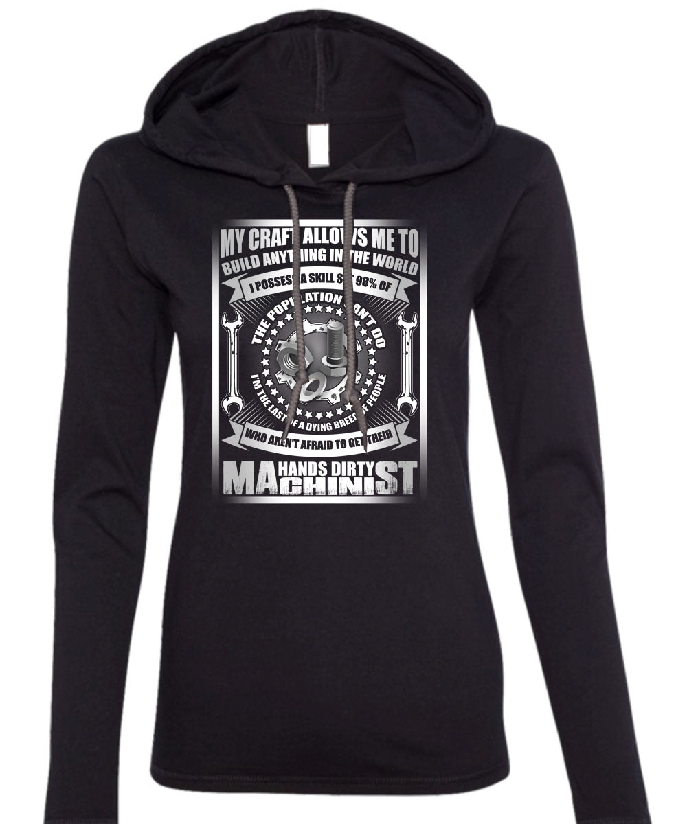 Hands Dirty Machinist T Shirt, Build Anything In The World T Shirt (Anvil Ladies Ringspun Hooded)