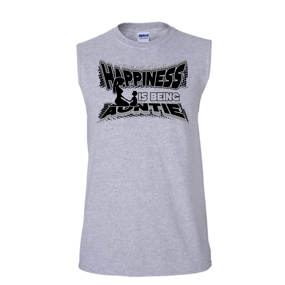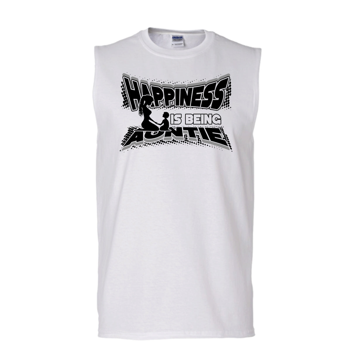 Happiness Is Being Autie T Shirt, Gift For Aunt Tank Top (Men's Cotton Sleeveless)