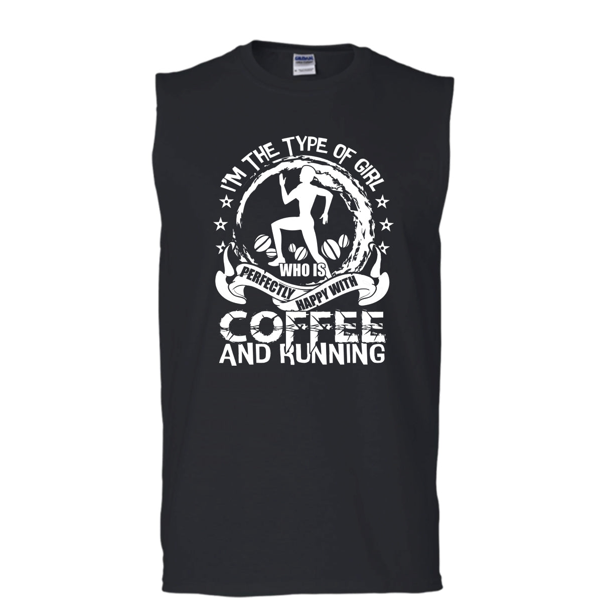 Happy With Coffee And Running T Shirt, Coolest Runner Tank Top (Men's Cotton Sleeveless)
