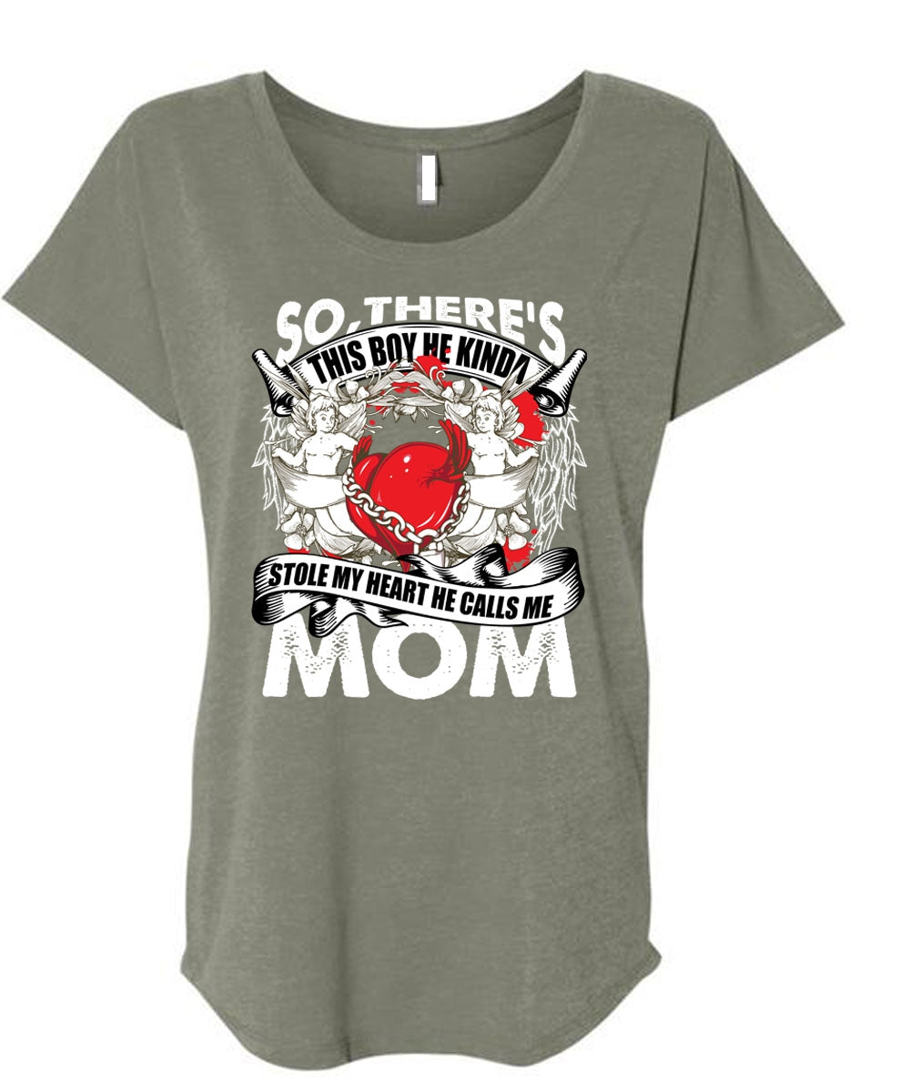 He Calls Me Mom T Shirt, Stole My Heart T Shirt, Cool Shirt (Ladies' Triblend Dolman Sleeve)