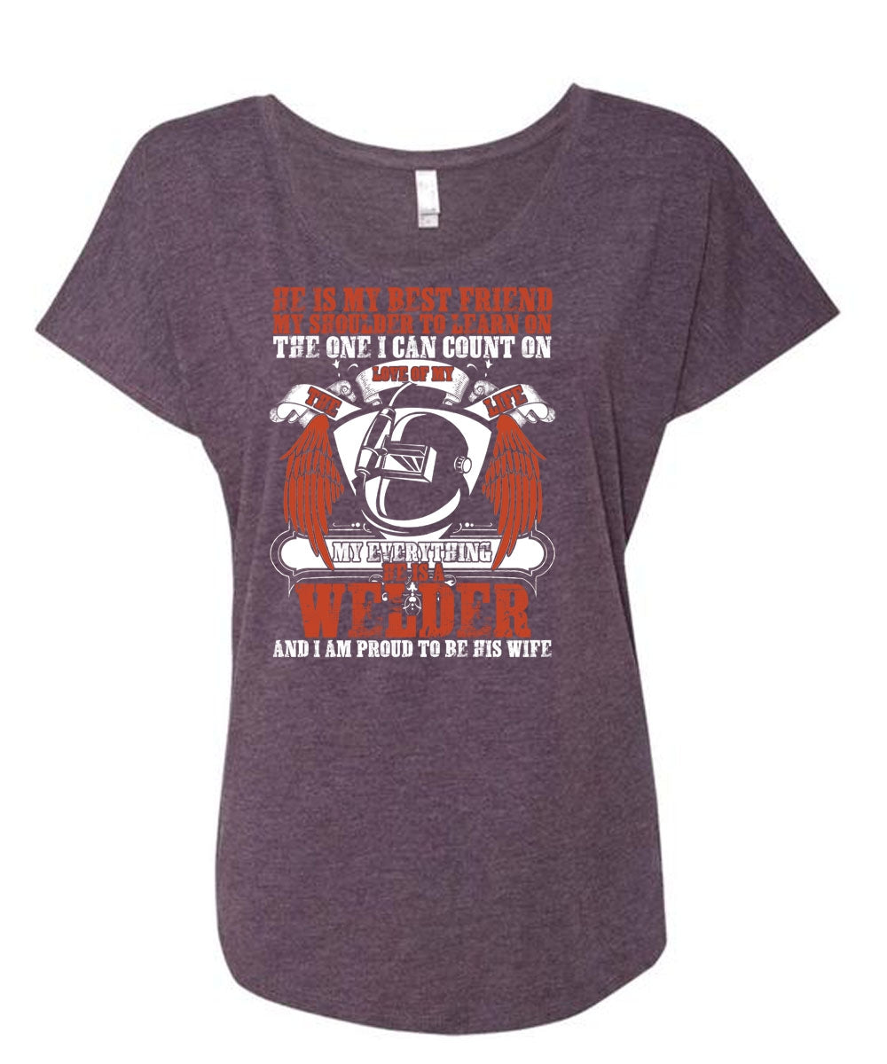 He Is A Welder T Shirt, He Is My Best Friend T Shirt, Cool Shirt (Ladies' Triblend Dolman Sleeve)