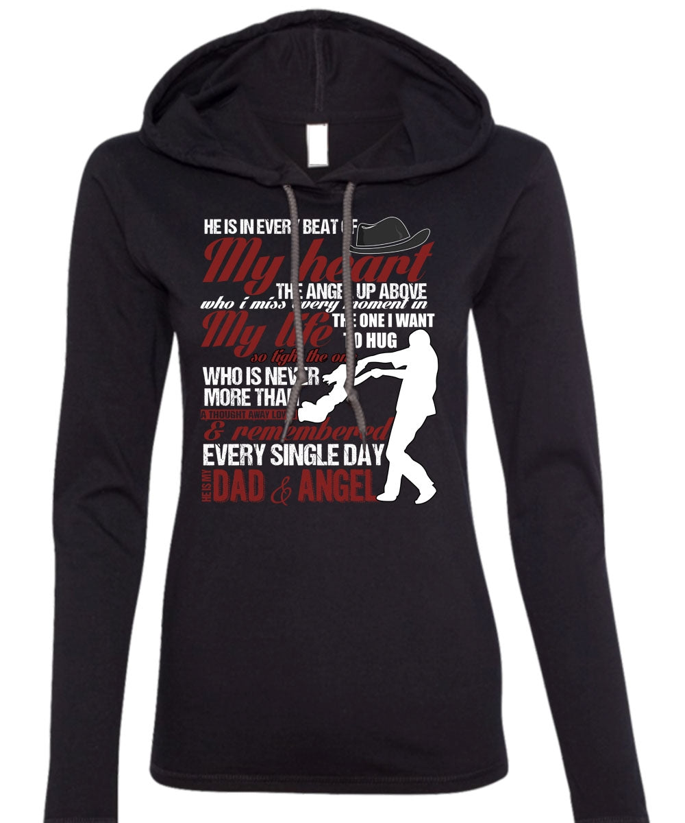 He Is My Dad And Angel T Shirt, My Heart T Shirt (Anvil Ladies Ringspun Hooded)