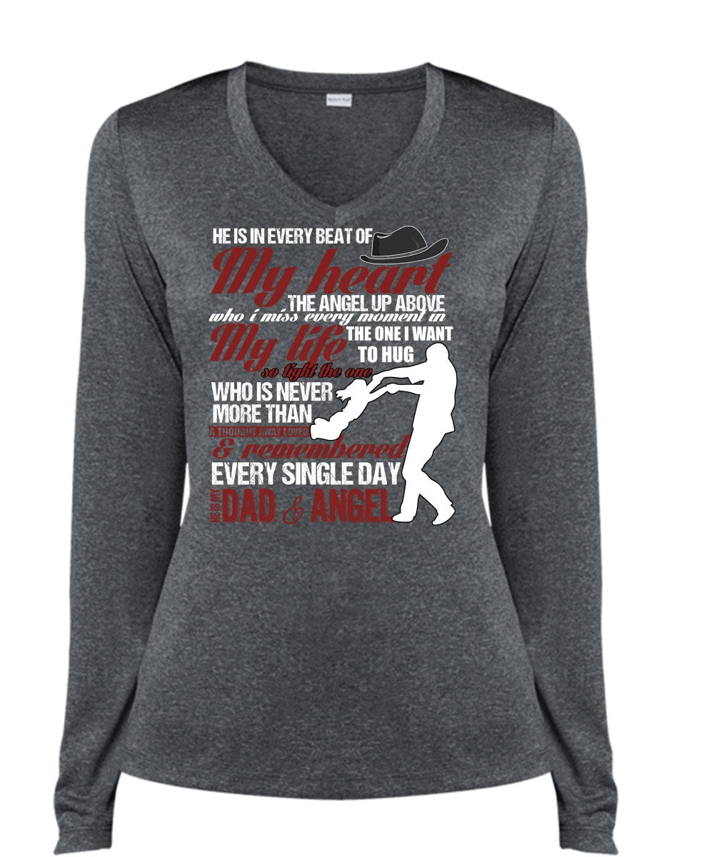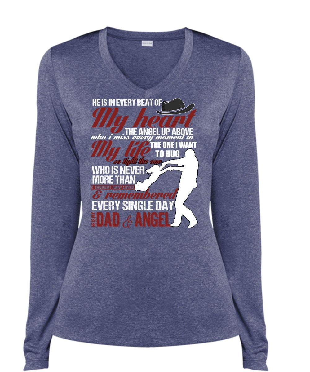 He Is My Dad And Angel T Shirt, My Heart T Shirt, Cool Shirt (Ladies LS Heather V-Neck)