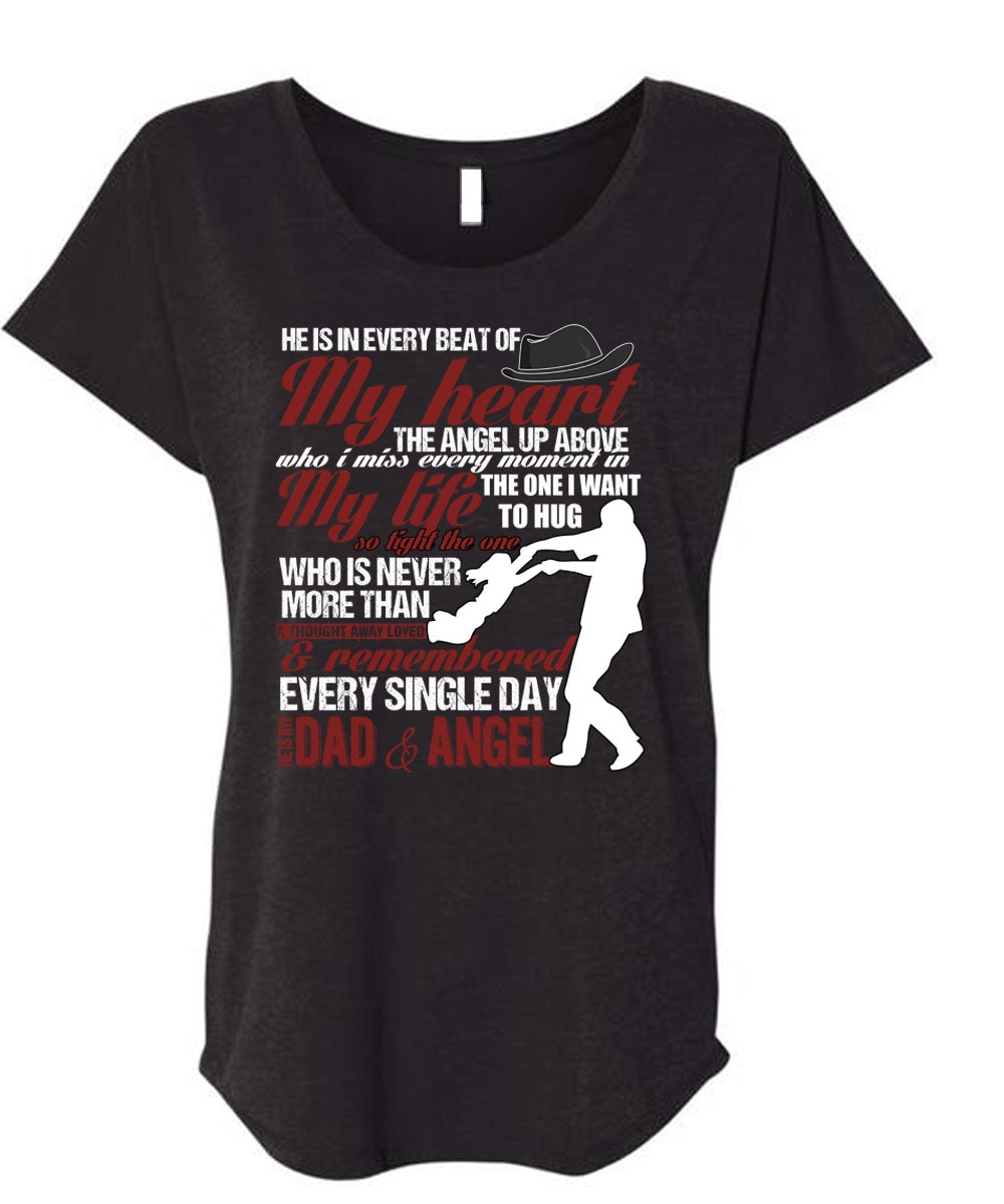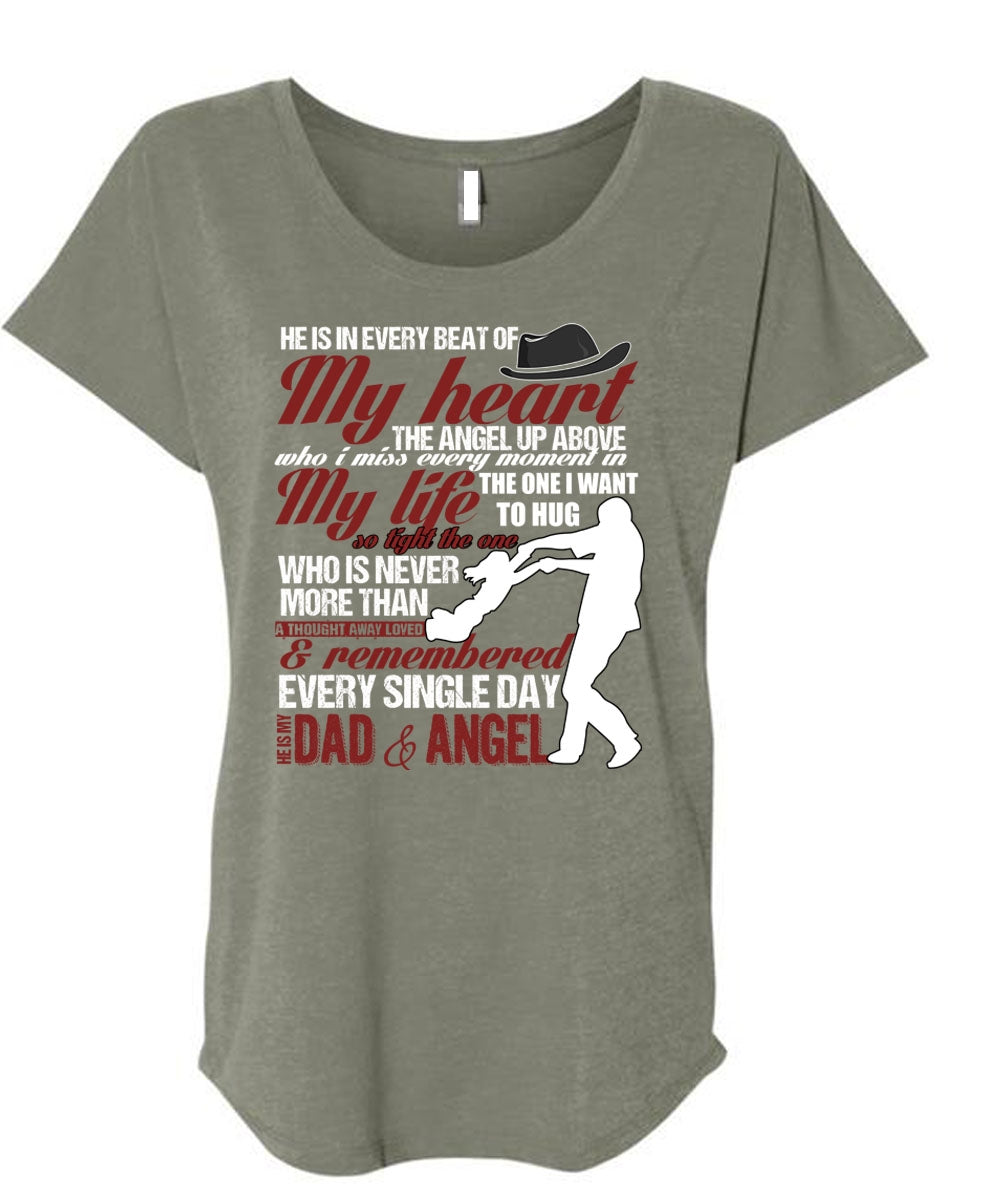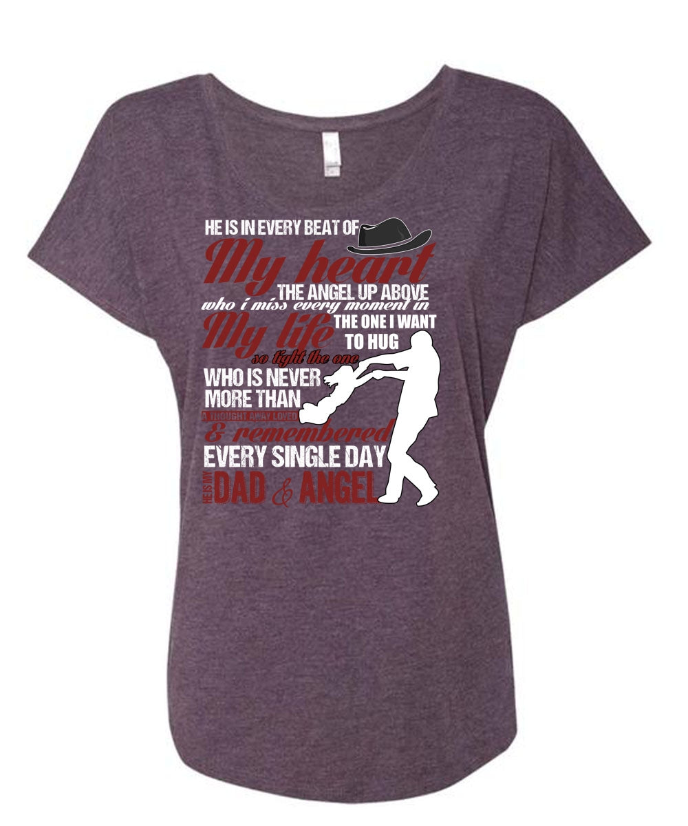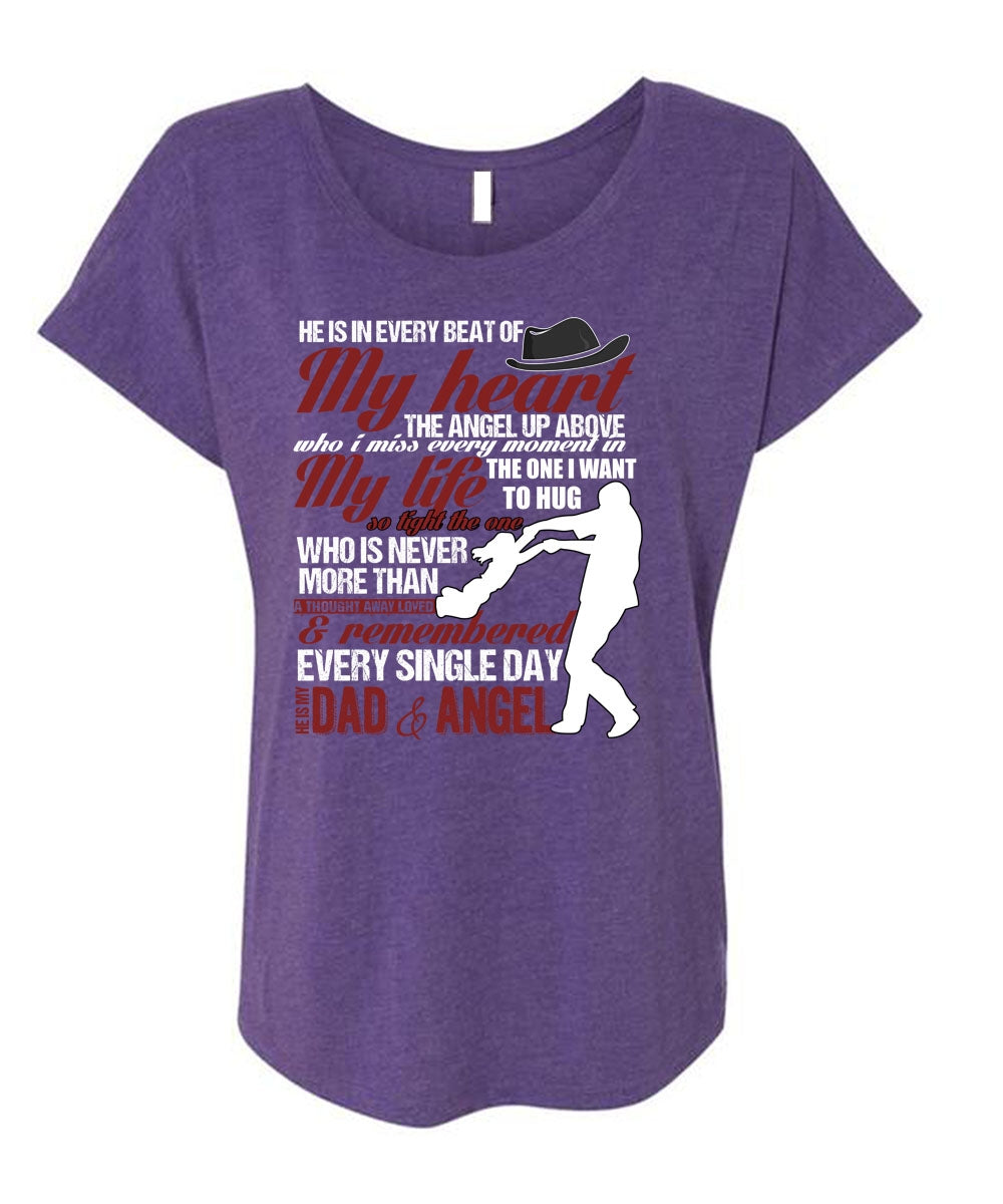 He Is My Dad And Angel T Shirt, My Heart T Shirt, Cool Shirt (Ladies' Triblend Dolman Sleeve)
