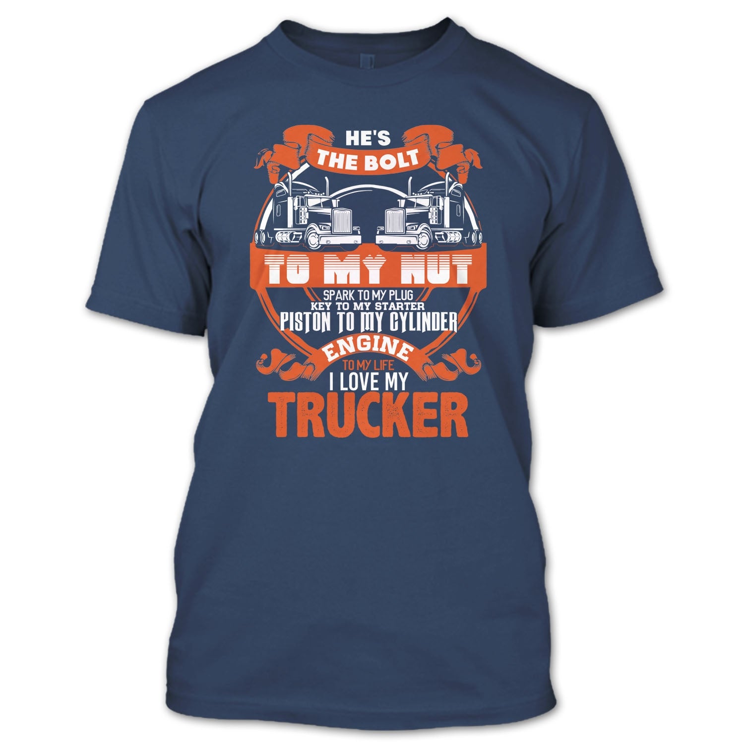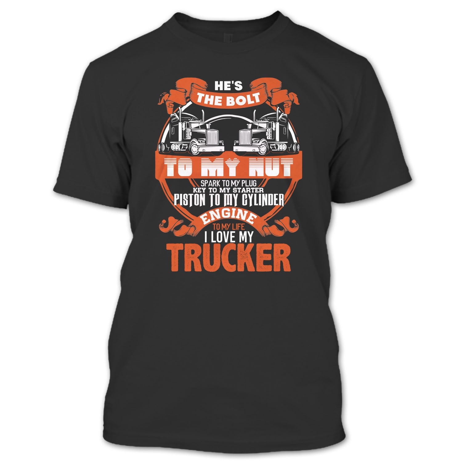He's The Bolt To My Nut T Shirt, I Love My Trucker T Shirt