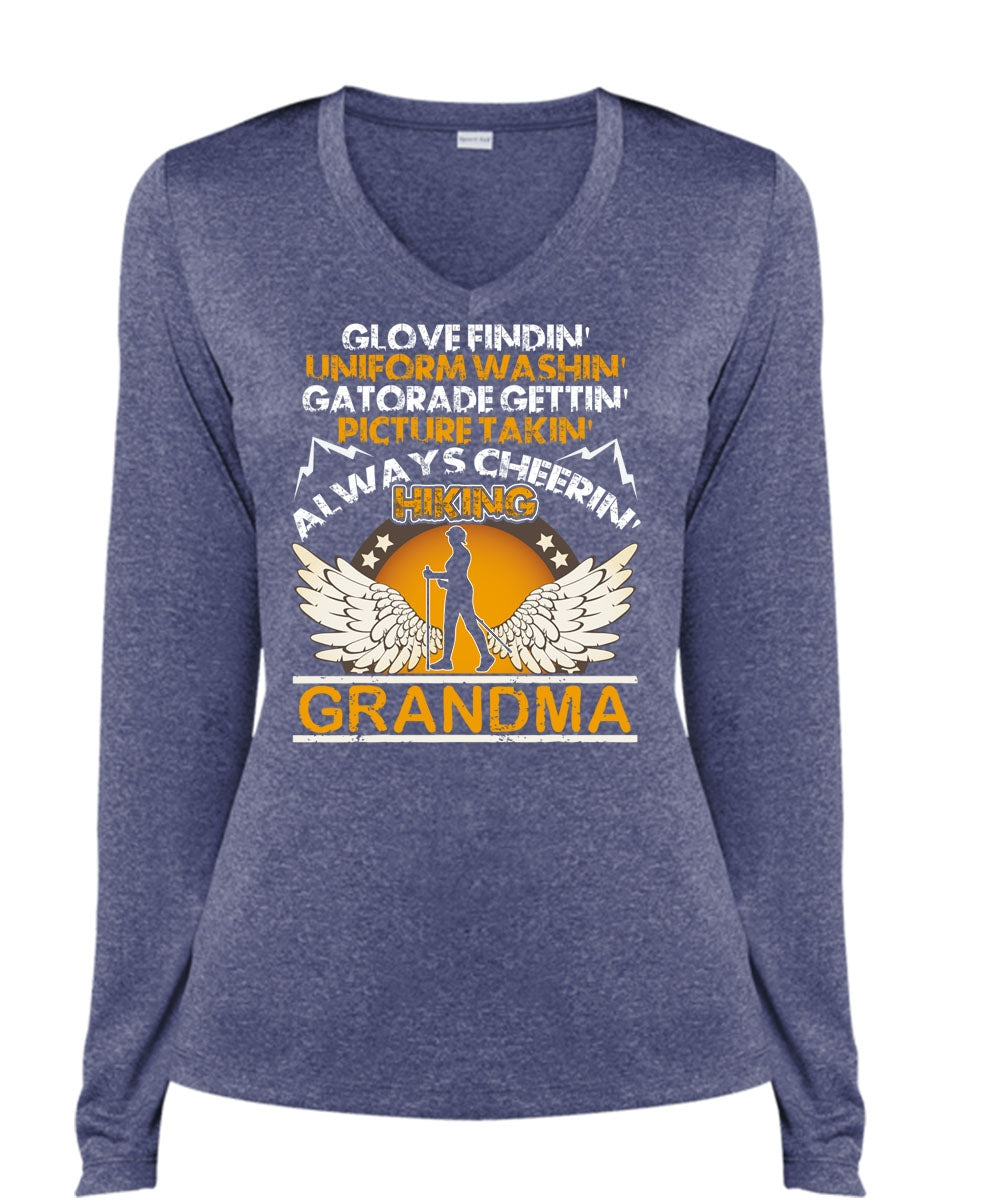 Hiking Grandma T Shirt, Picture Taking T Shirt, Cool Shirt (Ladies LS Heather V-Neck)
