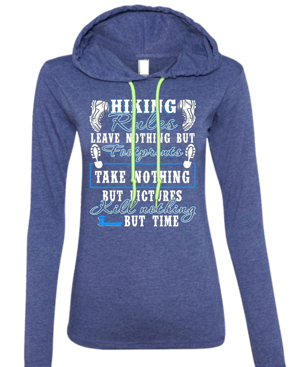 Hiking Rules T Shirt, Footprint T Shirt (Anvil Ladies Ringspun Hooded)