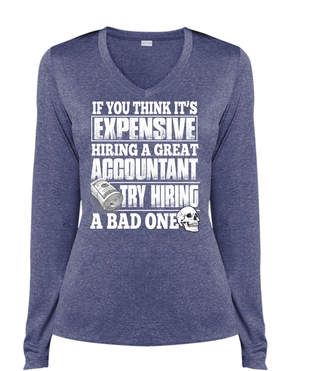 Hiring A Great Accountant T Shirt, Being An Accountant T Shirt, Cool Shirt (Ladies LS Heather V-Neck)