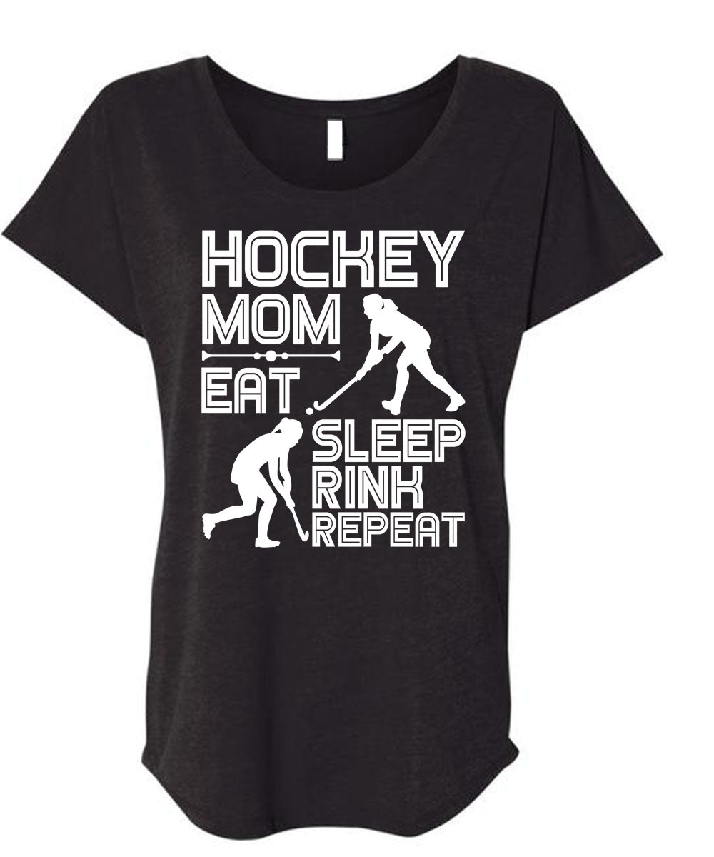 Hockey Mom Eat Sleep Rink Repeat T Shirt, Being A Hockey Mom T Shirt, Cool Shirt (Ladies' Triblend Dolman Sleeve)