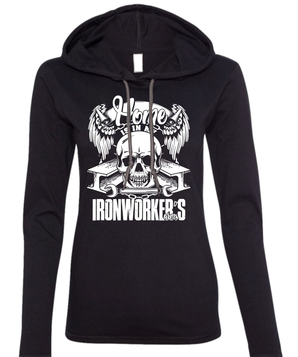 Home Is In My Ironworker's Arms T Shirt, Being An Ironworker T Shirt (Anvil Ladies Ringspun Hooded)