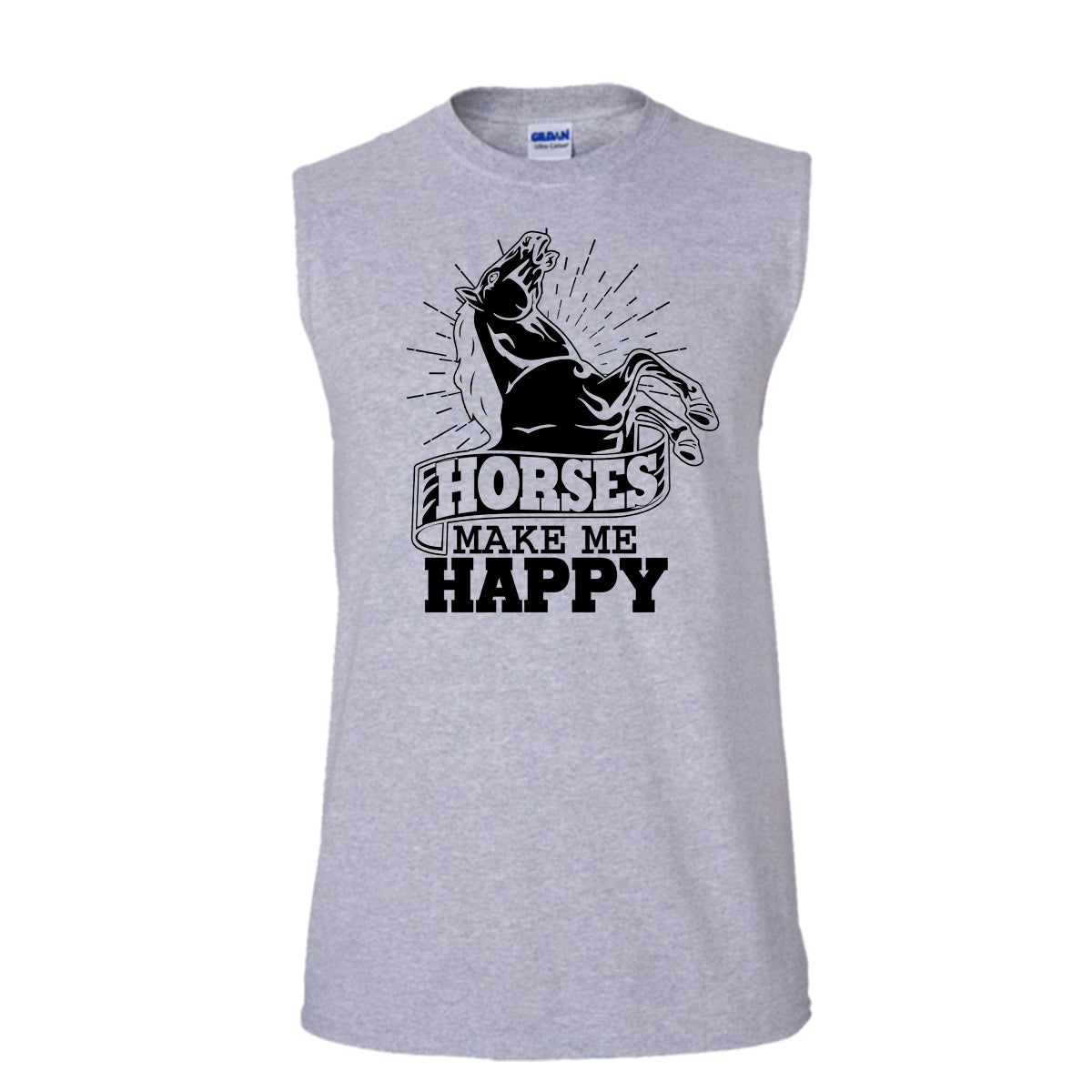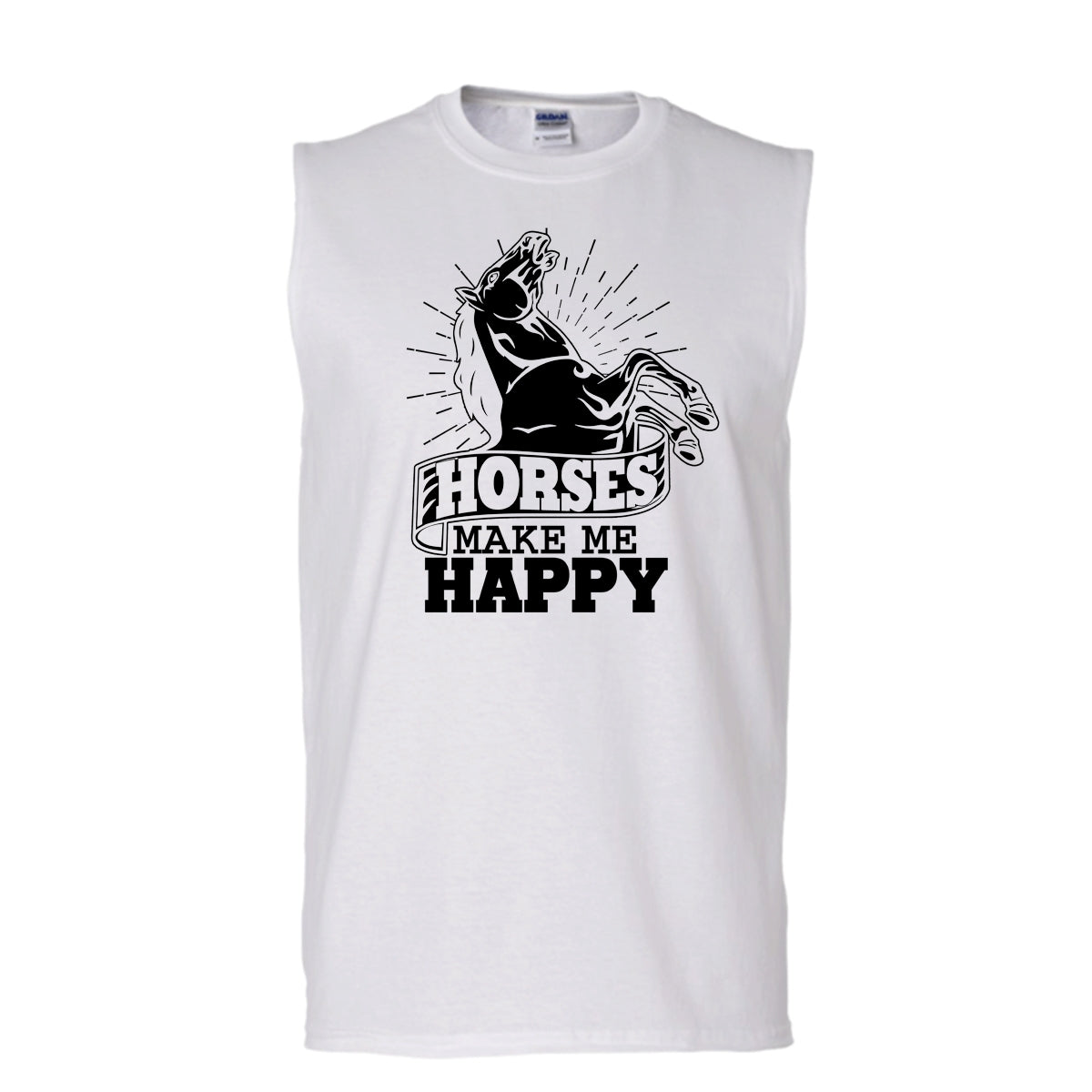 Horses Make Me Happy T Shirt, Coolest Equestrian Tank Top (Men's Cotton Sleeveless)