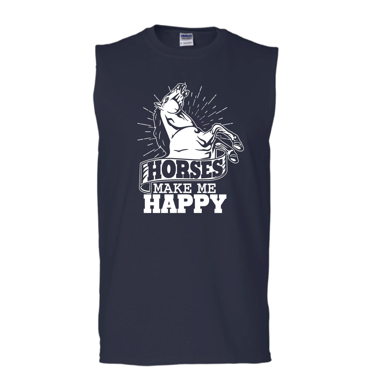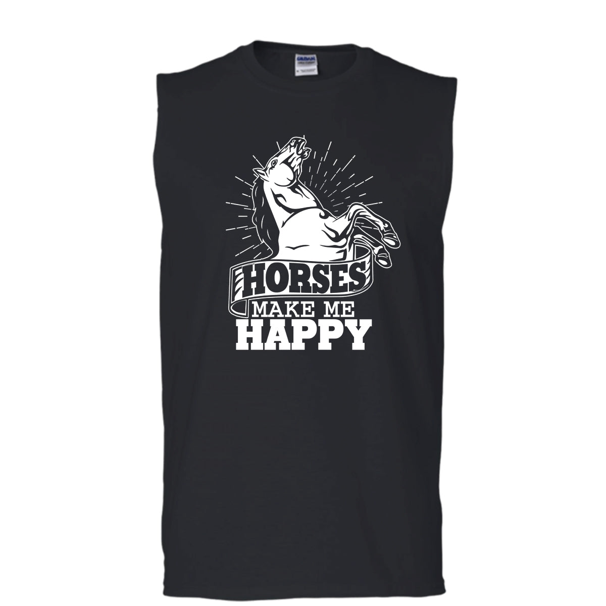 Horses Make Me Happy T Shirt, I Love Horses Tank Top (Men's Cotton Sleeveless)
