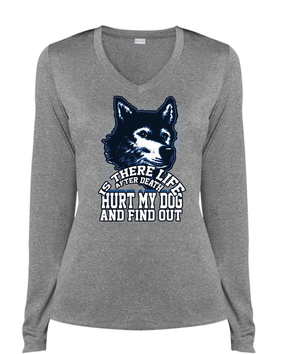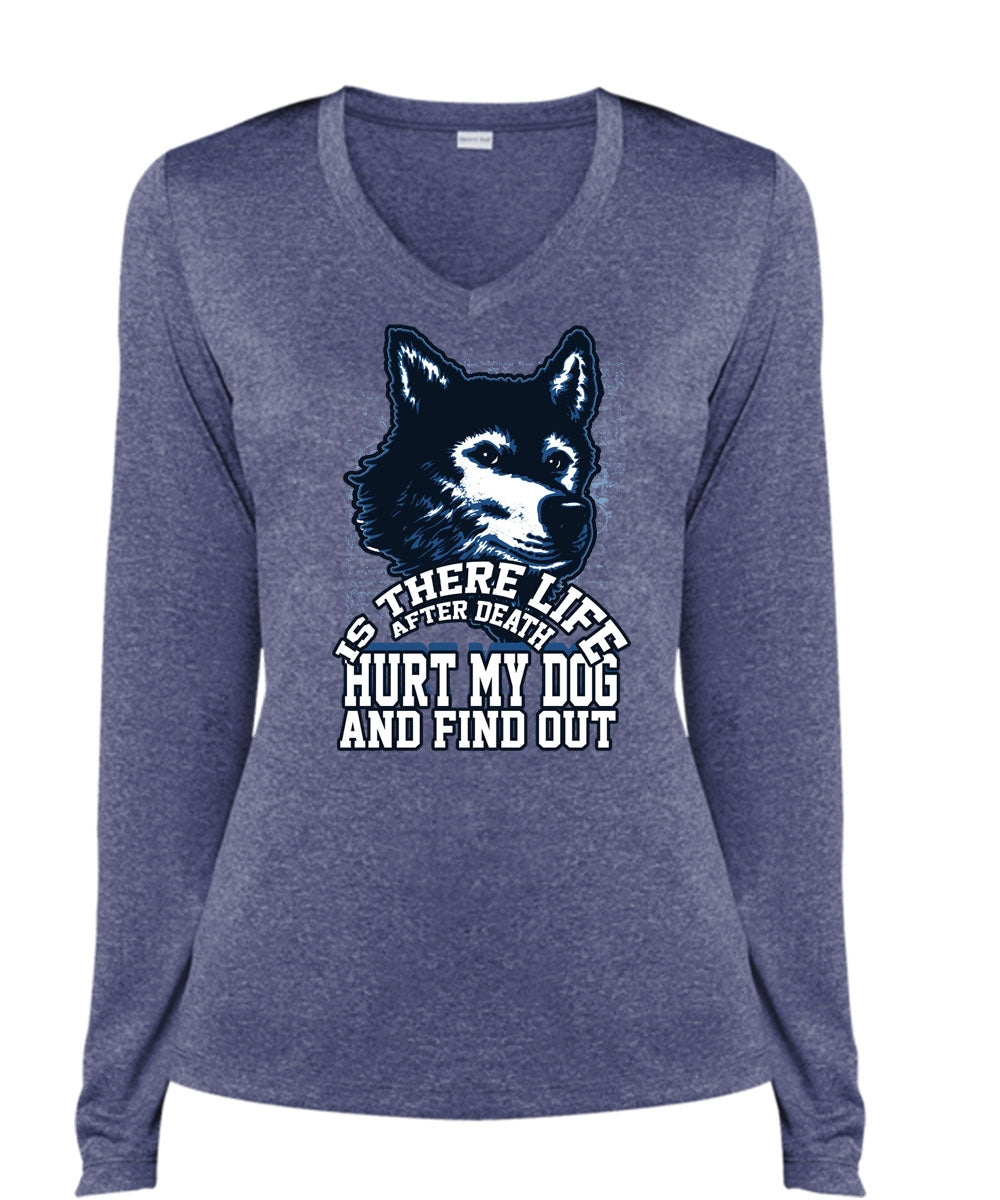 Hurt My Dog T Shirt, My Favorite T Shirt, Cool Shirt (Ladies LS Heather V-Neck)