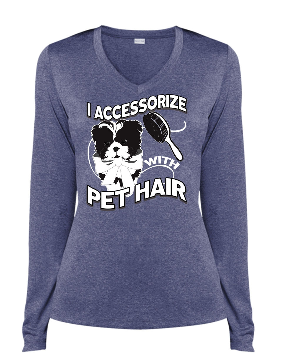 I Accessorize With Pet Hair T Shirt, My Favorite T Shirt, Cool Shirt (Ladies LS Heather V-Neck)