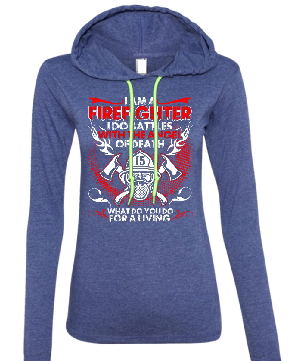 I Am A Firefighter T Shirt, The Angel Of Death T Shirt (Anvil Ladies Ringspun Hooded)
