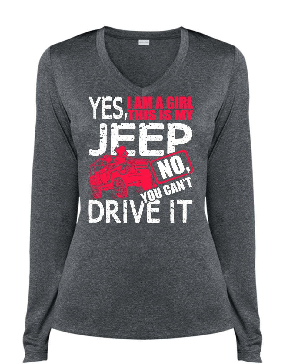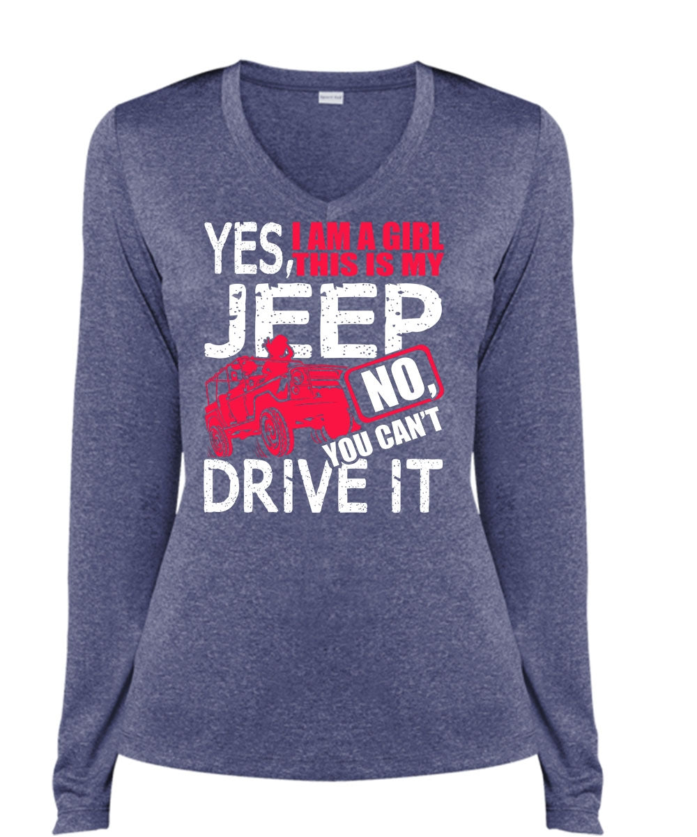 I Am A Girl This Is My Jeep T Shirt, You Can't Driver It T Shirt, Cool Shirt (Ladies LS Heather V-Neck)