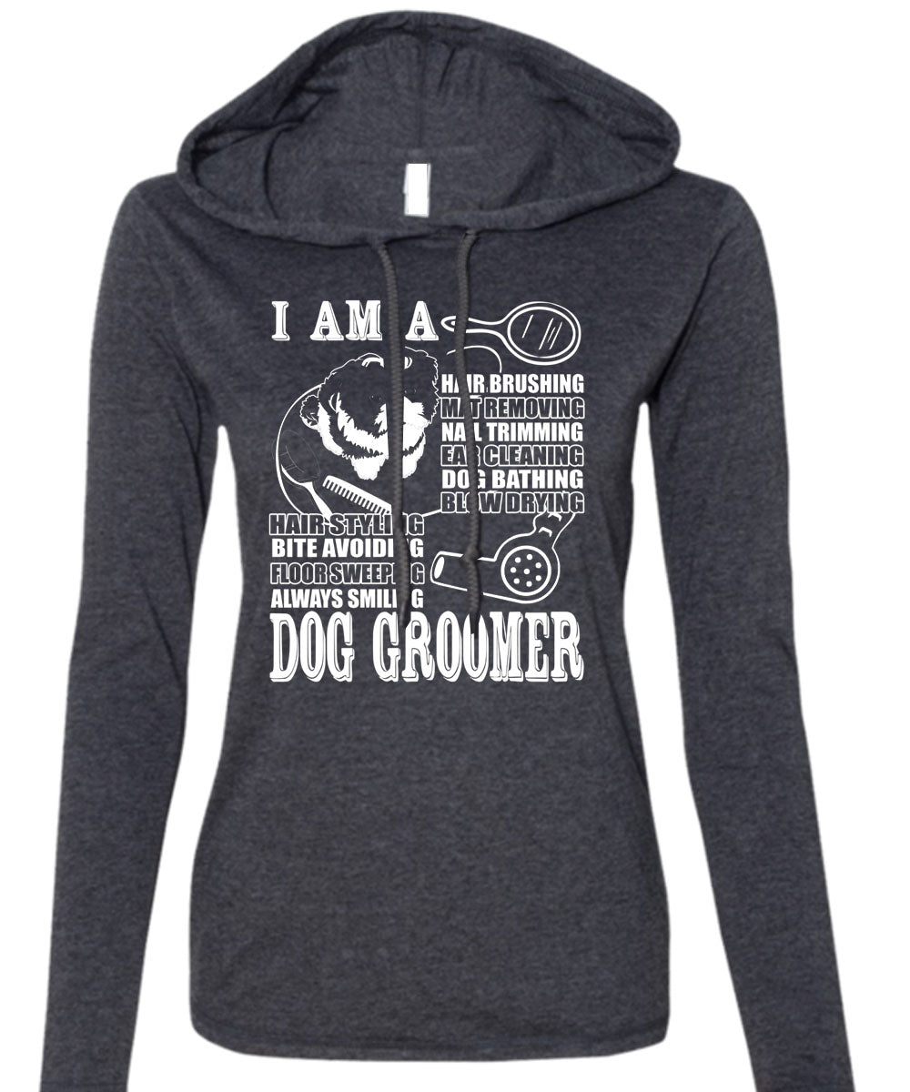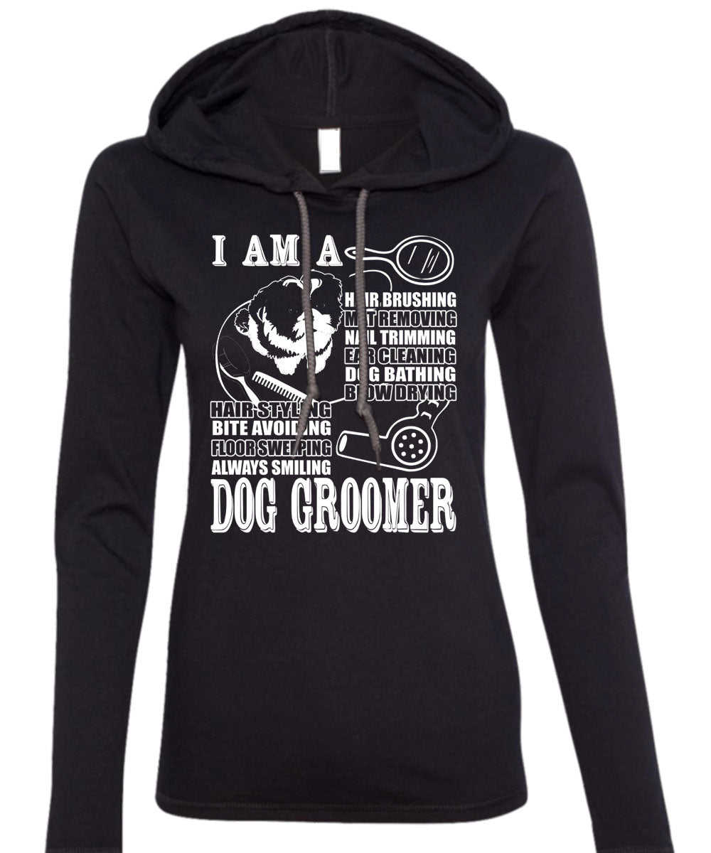 I Am A Hair Brushing T Shirt, Dog Groomer T Shirt (Anvil Ladies Ringspun Hooded)