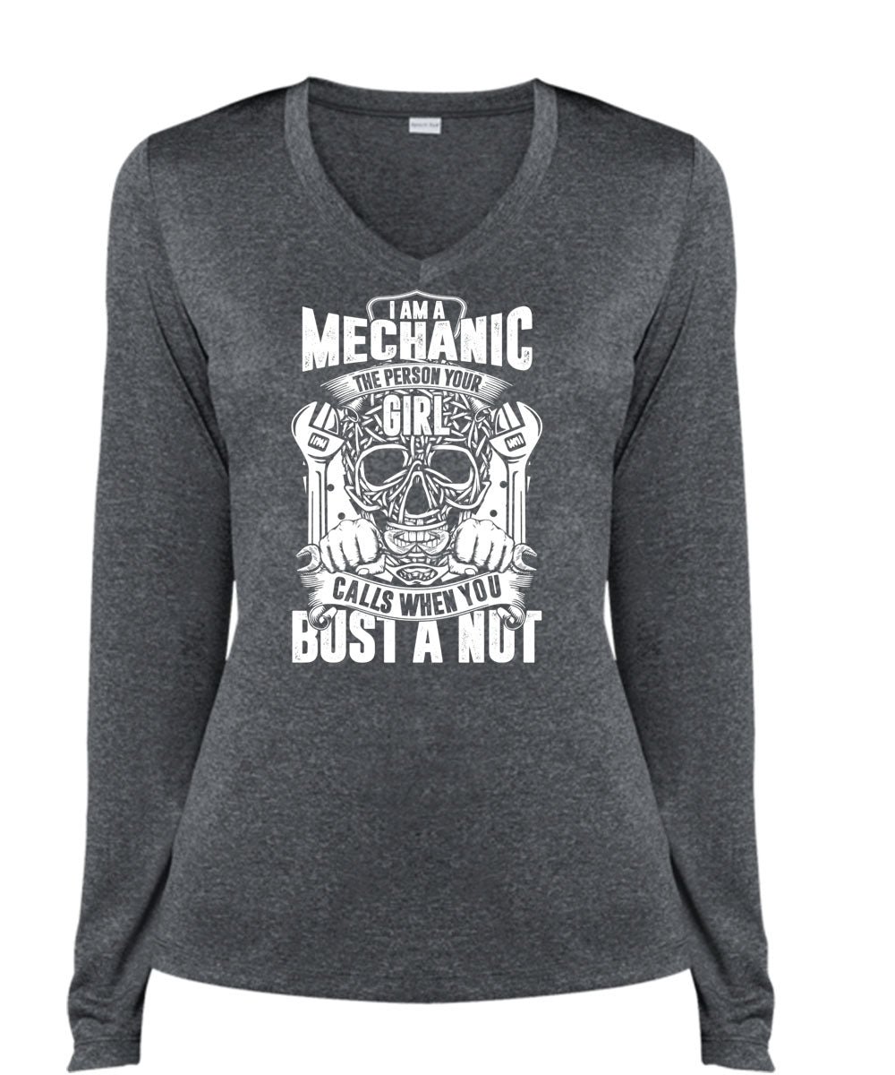 I Am A Mechanic T Shirt, Being A Mechanic T Shirt, Cool Shirt (Ladies LS Heather V-Neck)