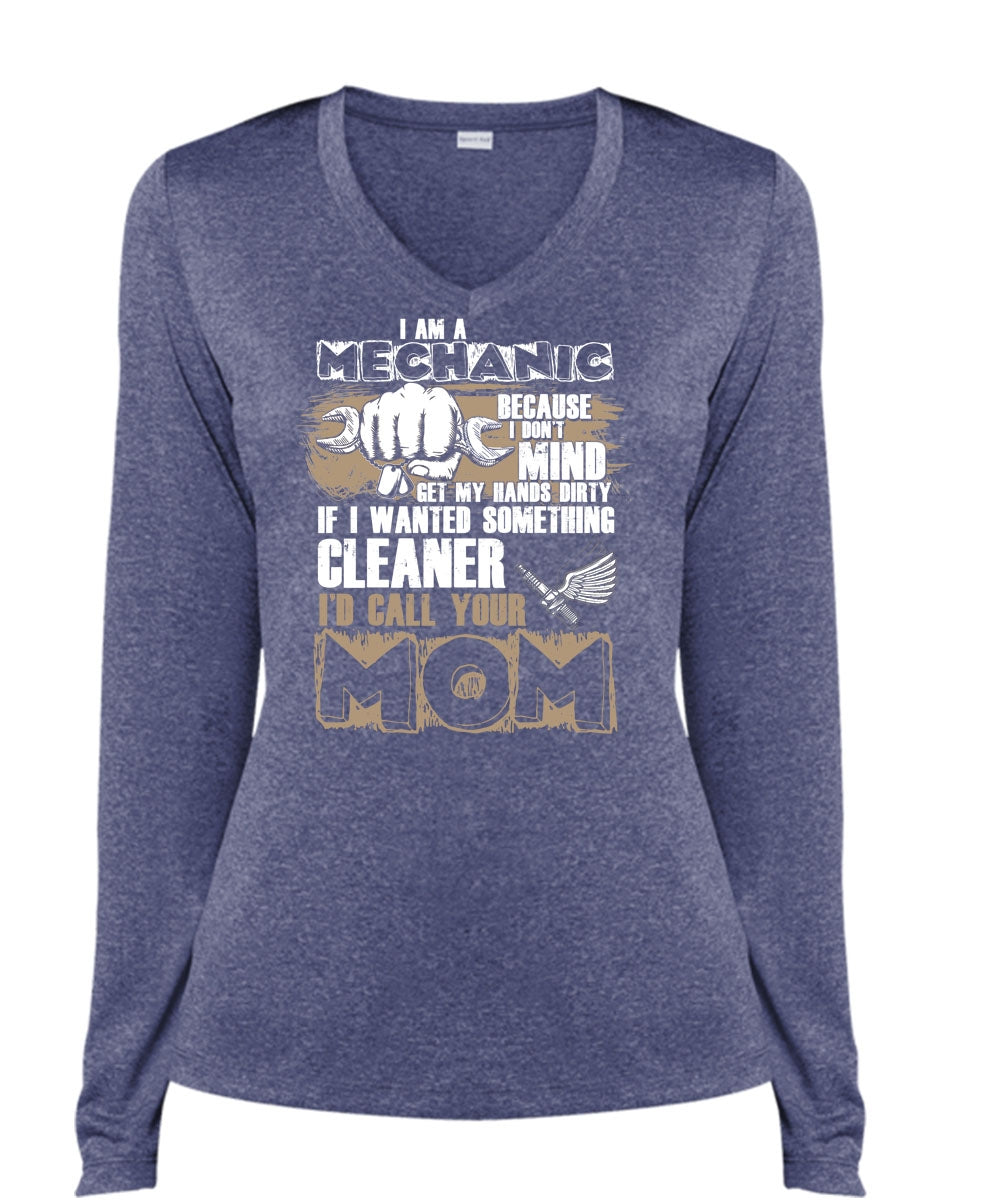 I Am A Mechanic T Shirt, I'd Call Your Mom T Shirt, Cool Shirt (Ladies LS Heather V-Neck)