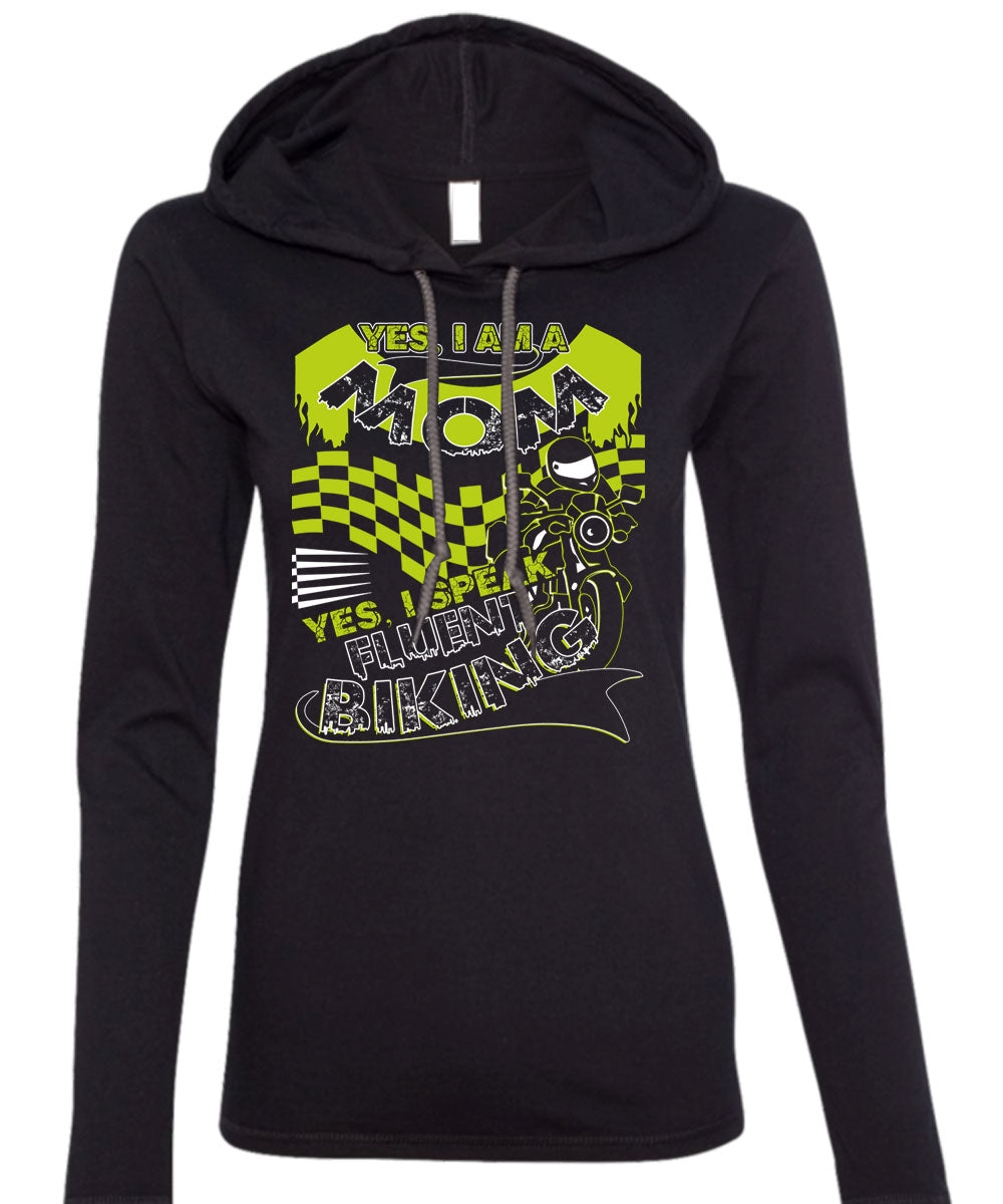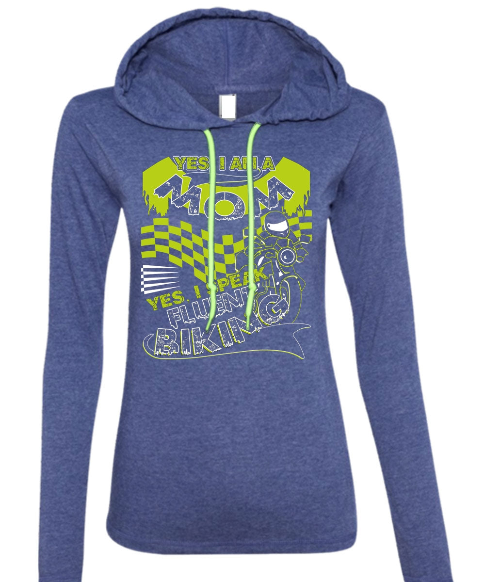 I Am A Mom T Shirt, I Speak Fluent Biking T Shirt (Anvil Ladies Ringspun Hooded)