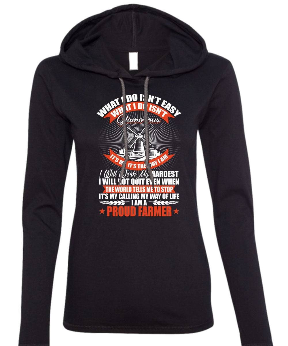I Am A Proud Farmer T Shirt, My Way Of Life T Shirt (Anvil Ladies Ringspun Hooded)