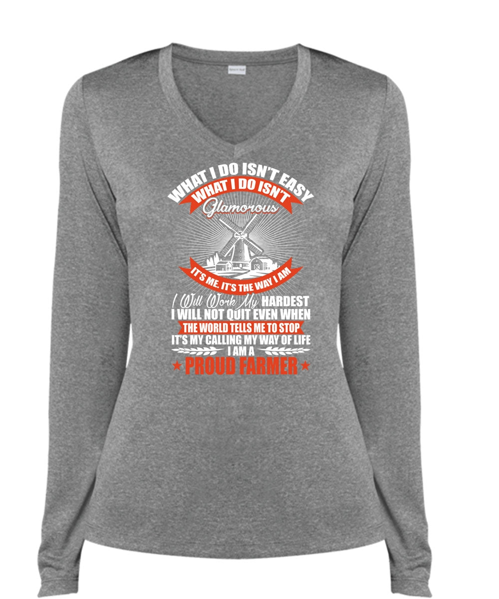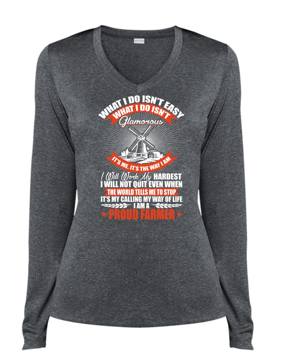 I Am A Proud Farmer T Shirt, My Way Of Life T Shirt, Cool Shirt (Ladies LS Heather V-Neck)