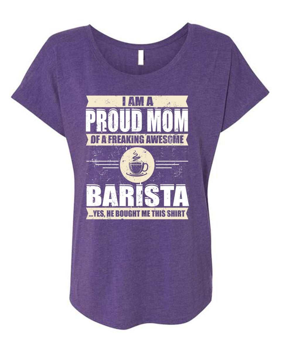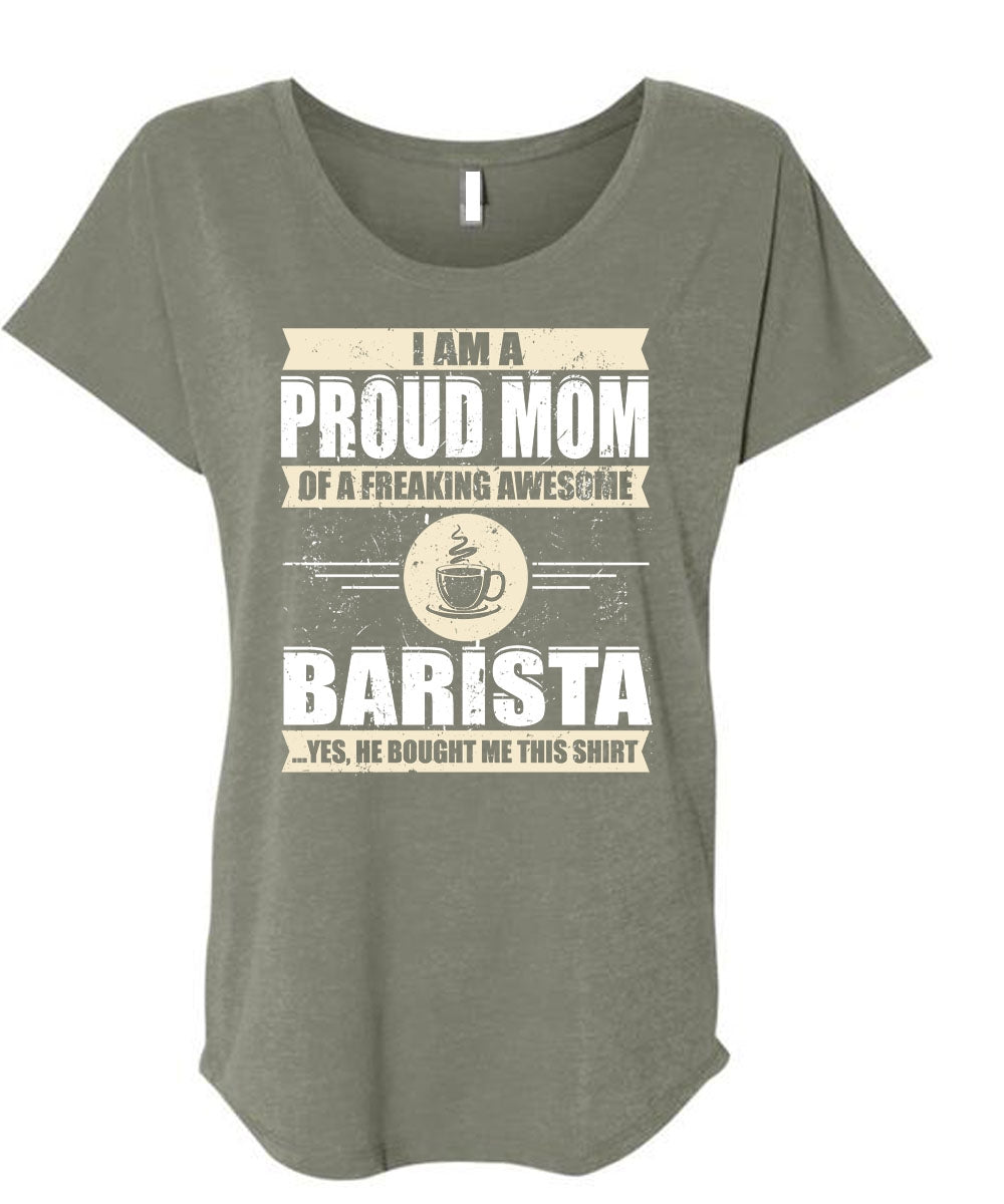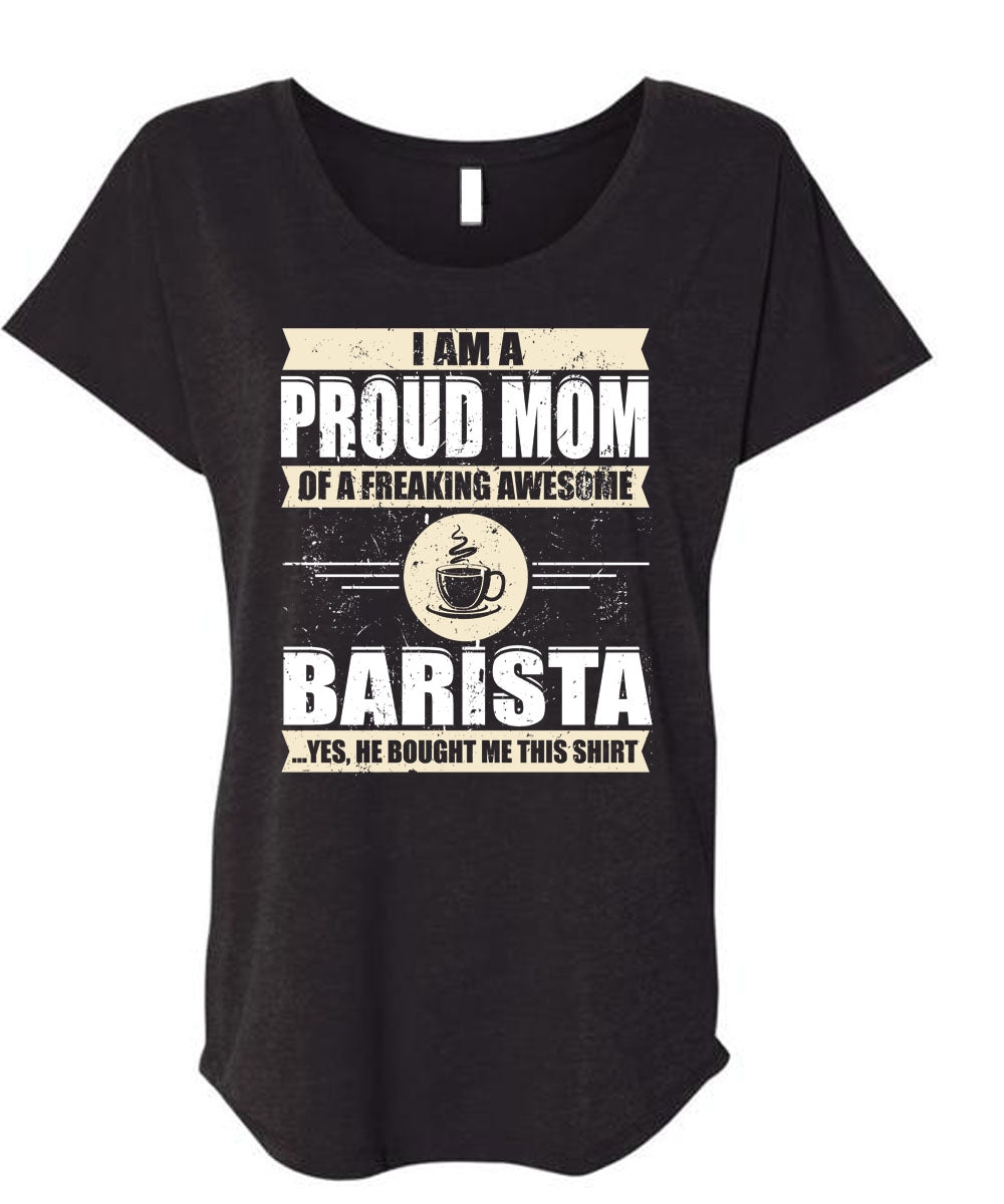 I Am A Proud Mom T Shirt, Awesome Barista T Shirt, Cool Shirt (Ladies' Triblend Dolman Sleeve)