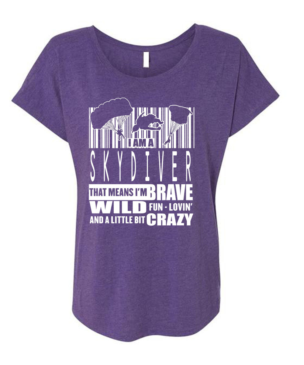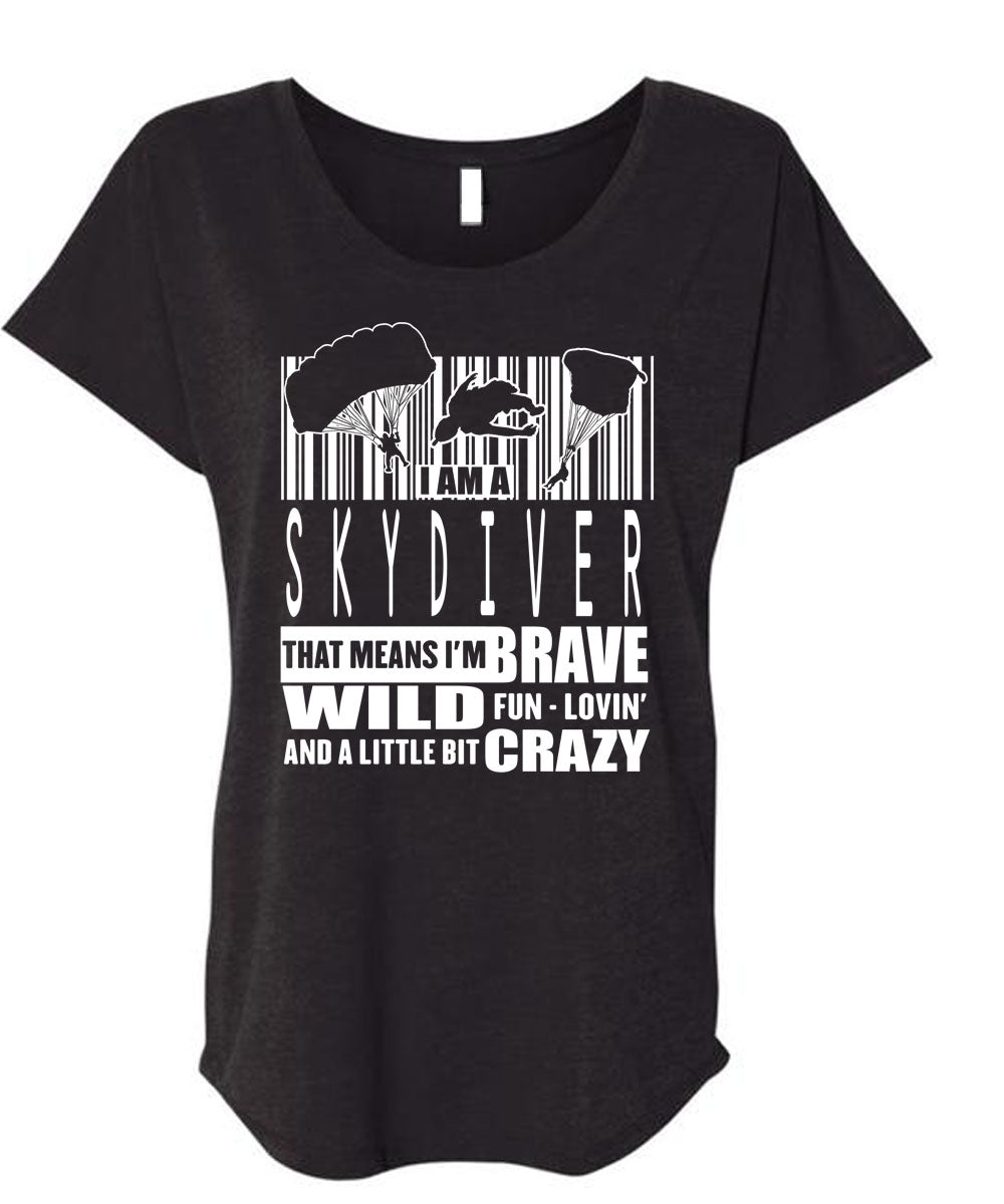 I Am A Skydiver T Shirt, Little Bit Crazy T Shirt, Cool Shirt (Ladies' Triblend Dolman Sleeve)