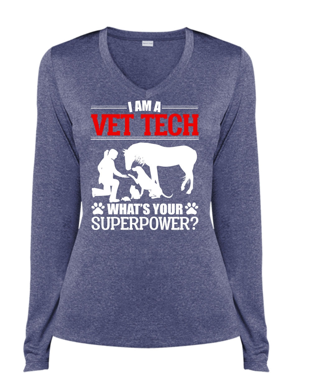 I Am A Vet Tech T Shirt, Being A Vet Tech T Shirt, Cool Shirt (Ladies LS Heather V-Neck)