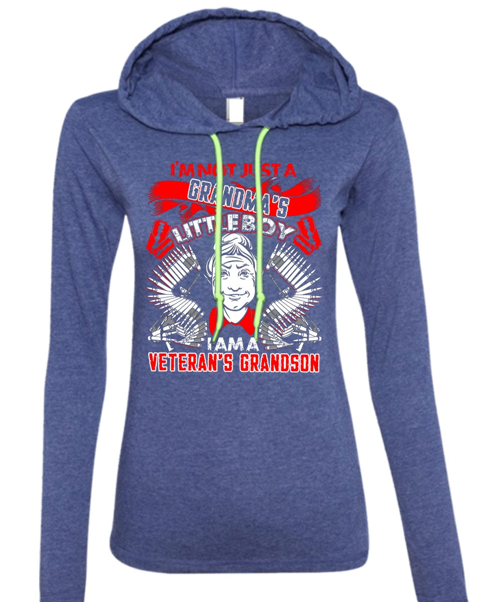 I Am A Veteran's Grandson T Shirt, Grandma's Little Boy T Shirt (Anvil Ladies Ringspun Hooded)