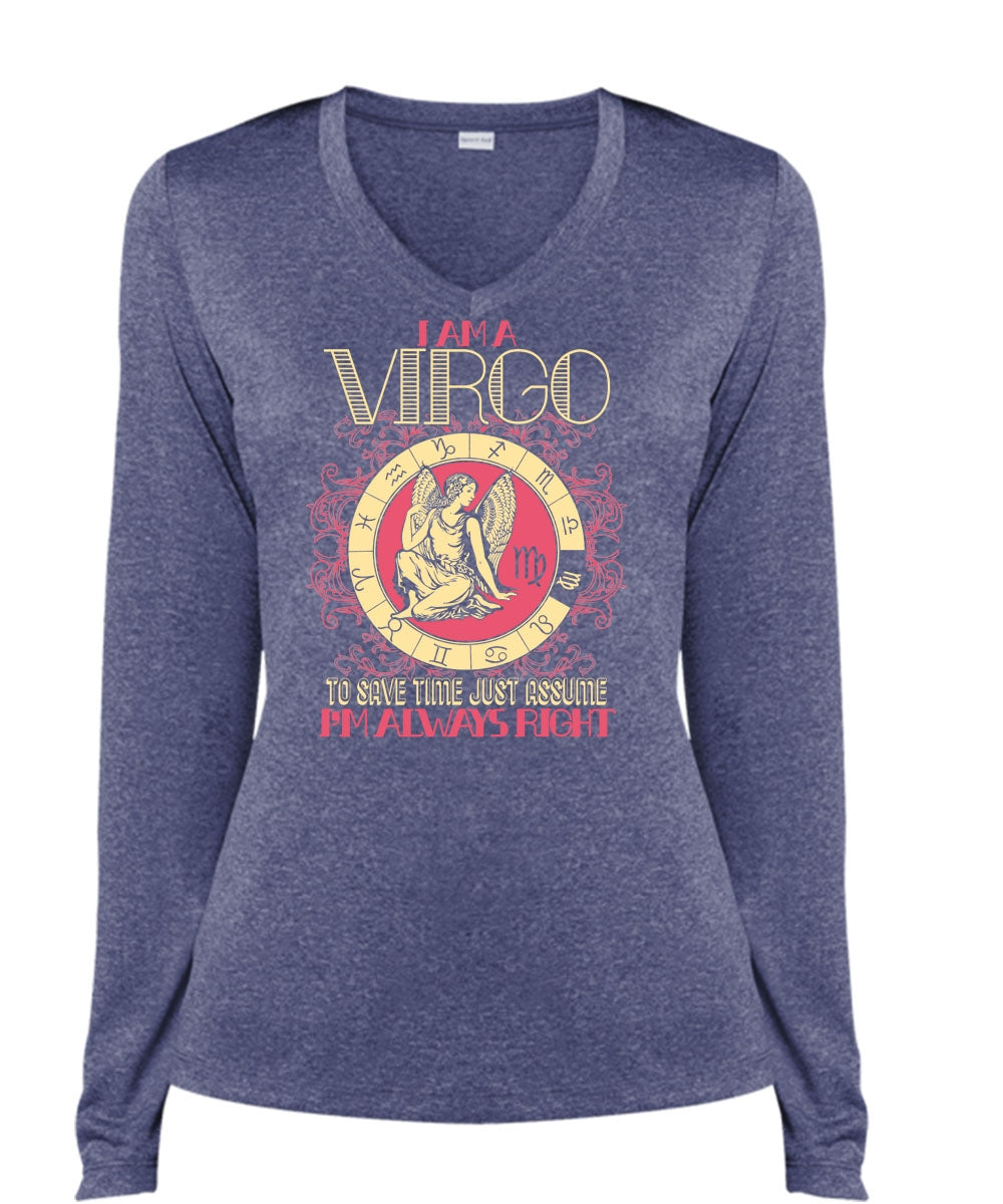 I Am A Virgo T Shirt, I'm Always Right T Shirt, Cool Shirt (Ladies LS Heather V-Neck)