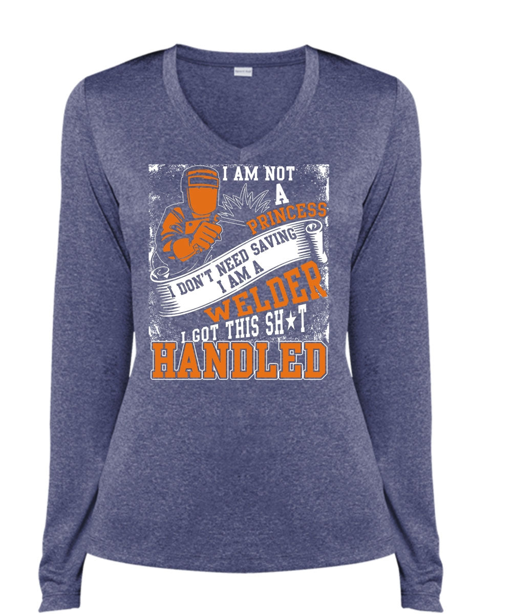 I Am A Welder T Shirt, I Love Welder T Shirt, Cool Shirt (Ladies LS Heather V-Neck)