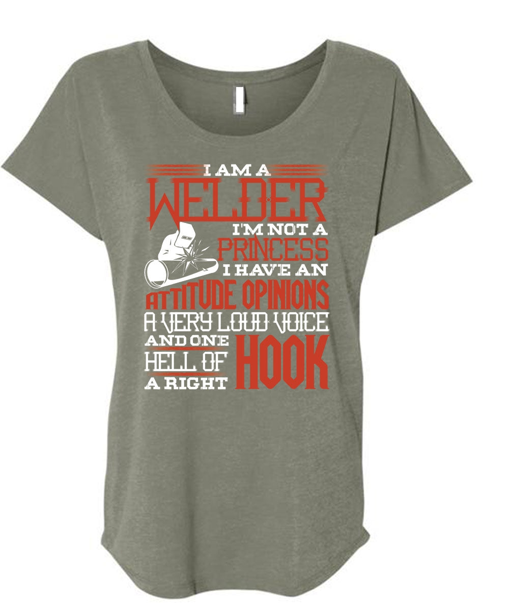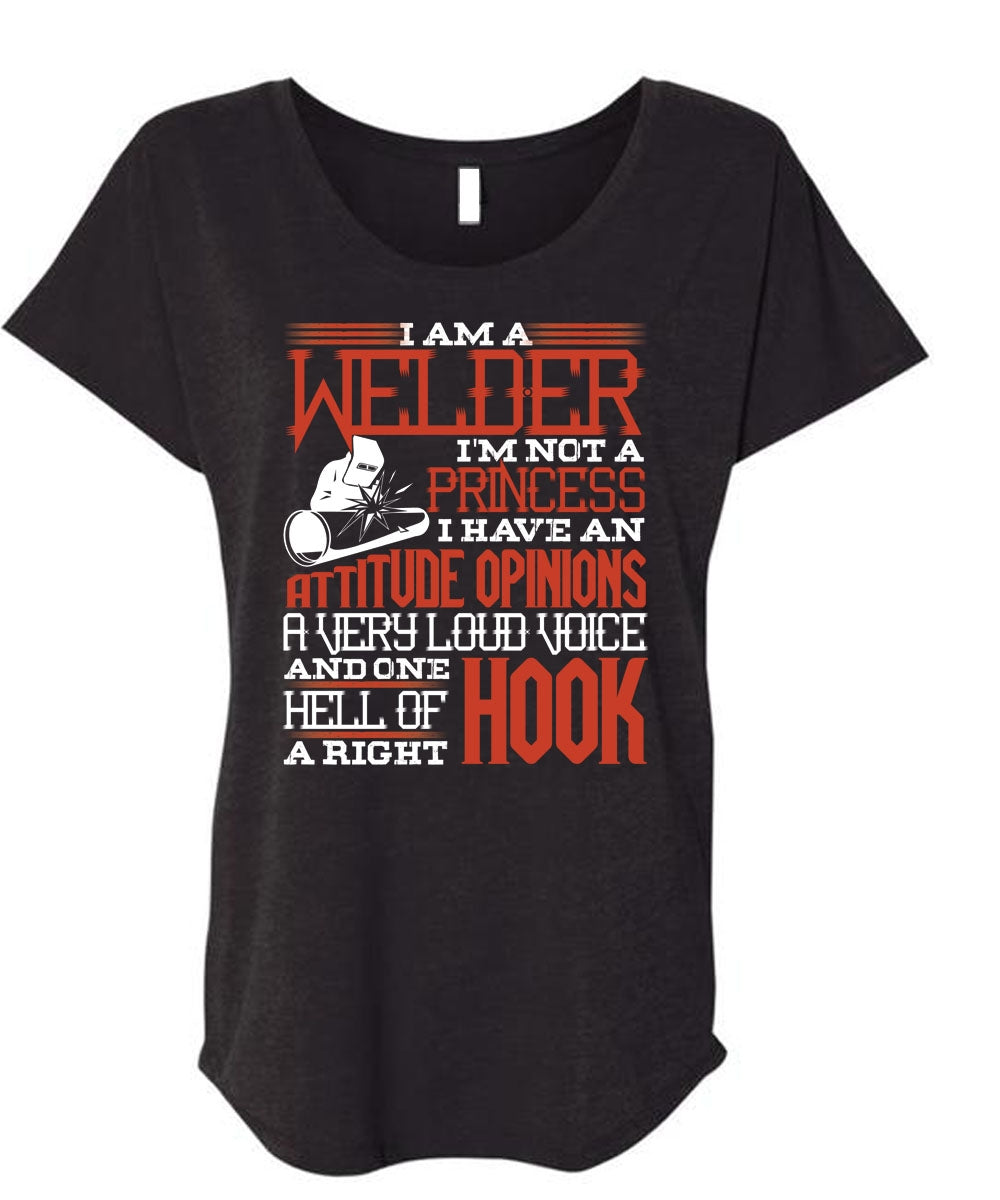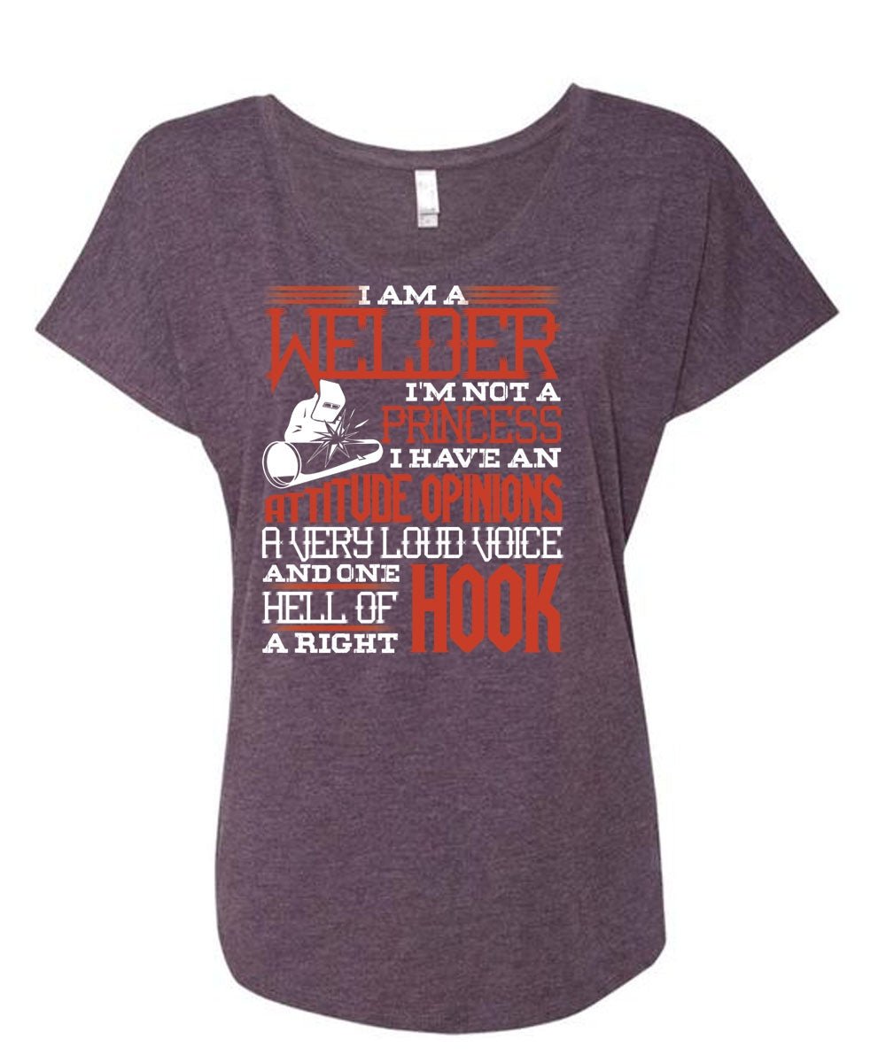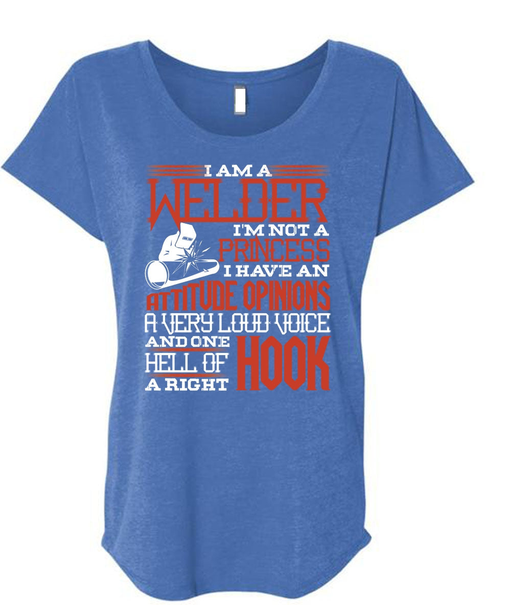 I Am A Welder T Shirt, I'm Not A Princess T Shirt, Cool Shirt (Ladies' Triblend Dolman Sleeve)