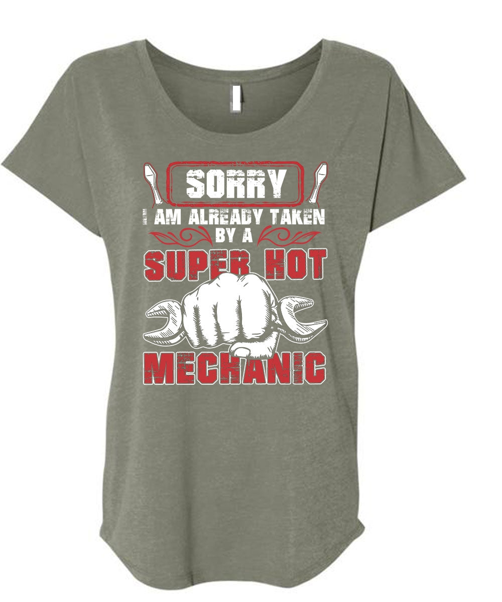 I Am Already Taken By A Hot Mechanic T Shirt, Being A Mechanic T Shirt, Cool Shirt (Ladies' Triblend Dolman Sleeve)