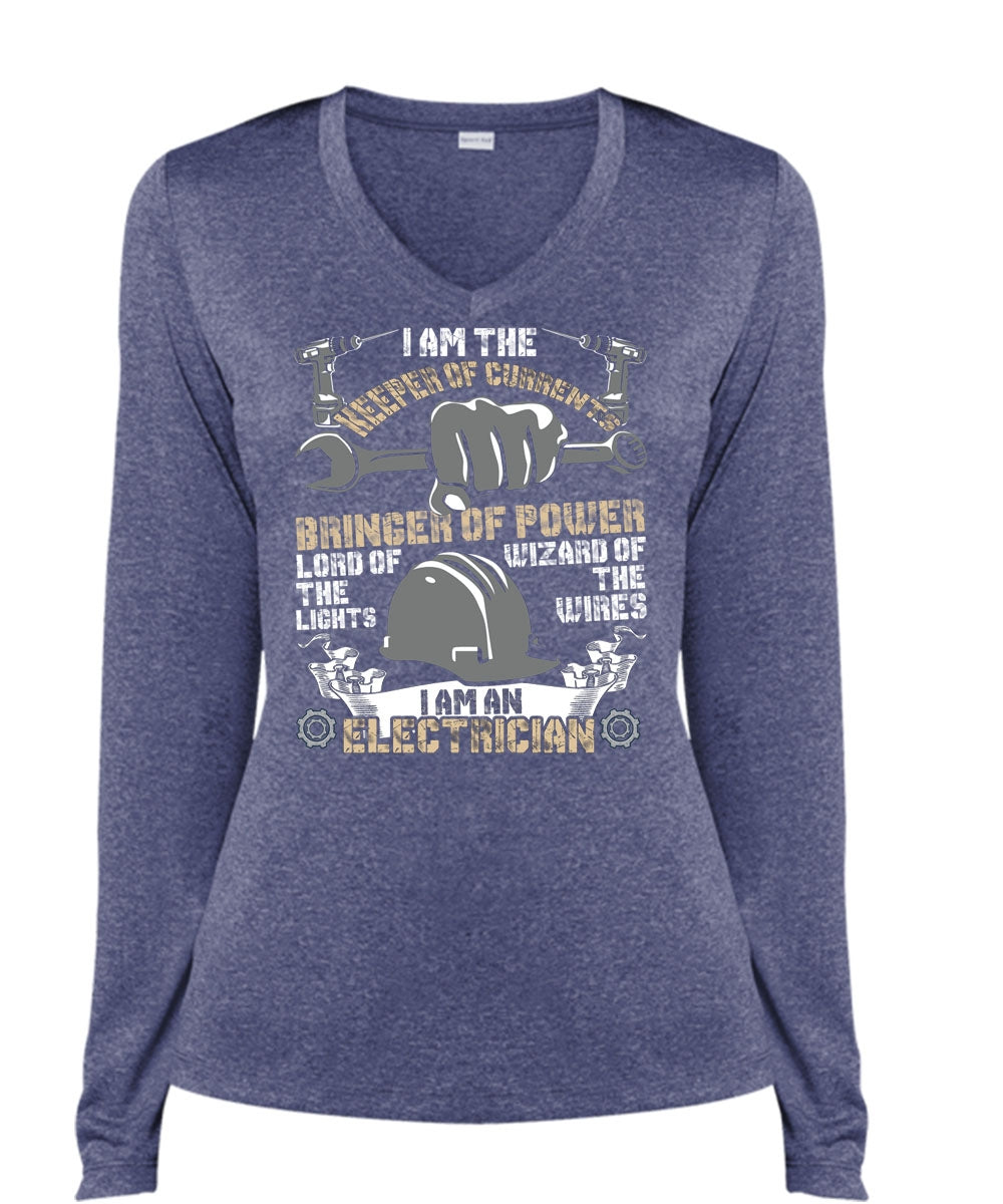 I Am An Electrician T Shirt, Keeper Of Currents T Shirt, Cool Shirt (Ladies LS Heather V-Neck)