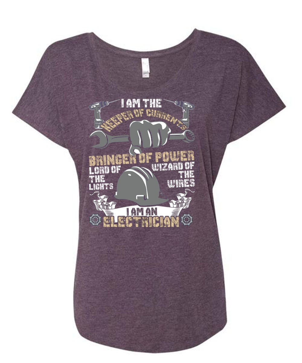 I Am An Electrician T Shirt, Keeper Of Currents T Shirt, Cool Shirt (Ladies' Triblend Dolman Sleeve)