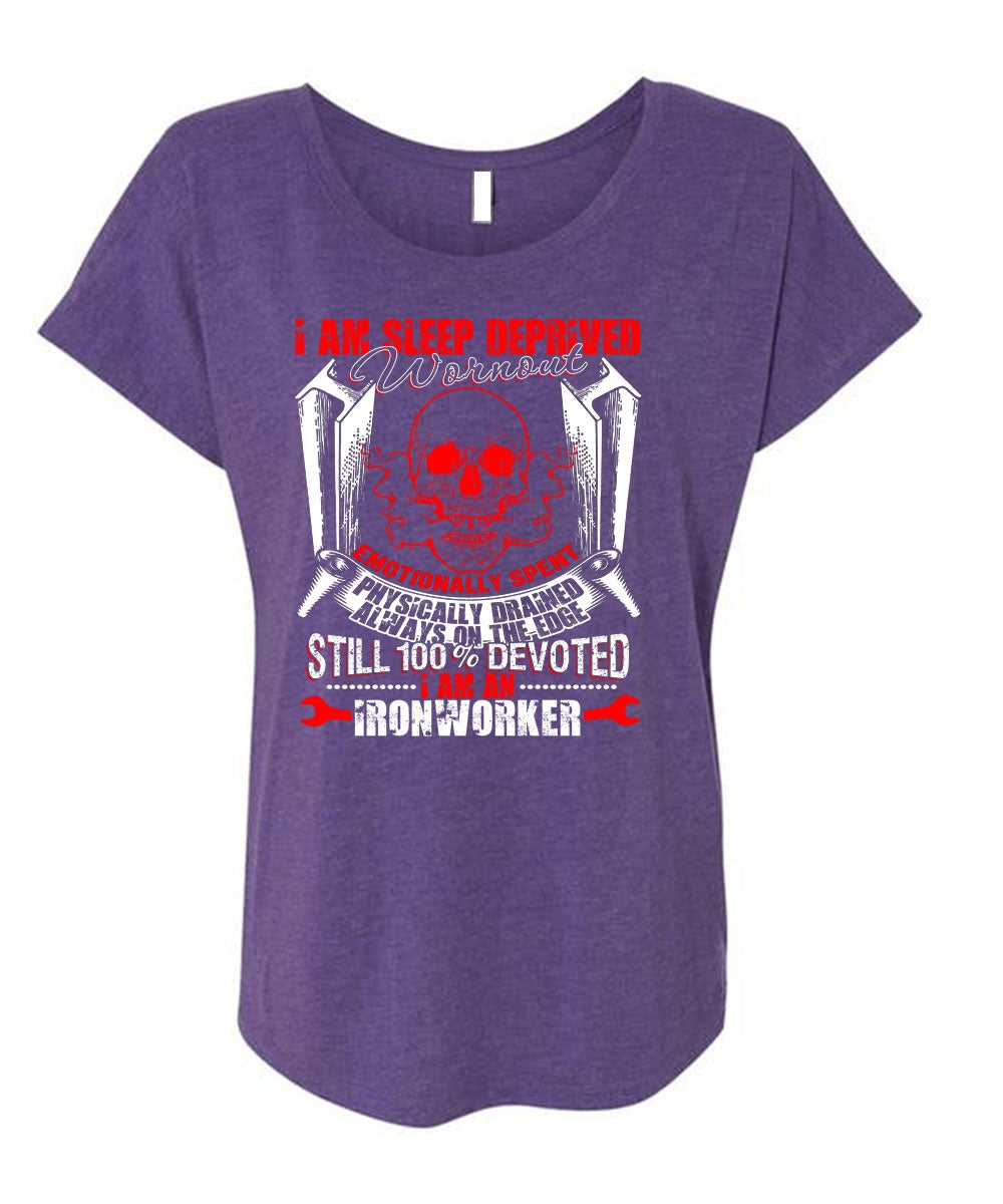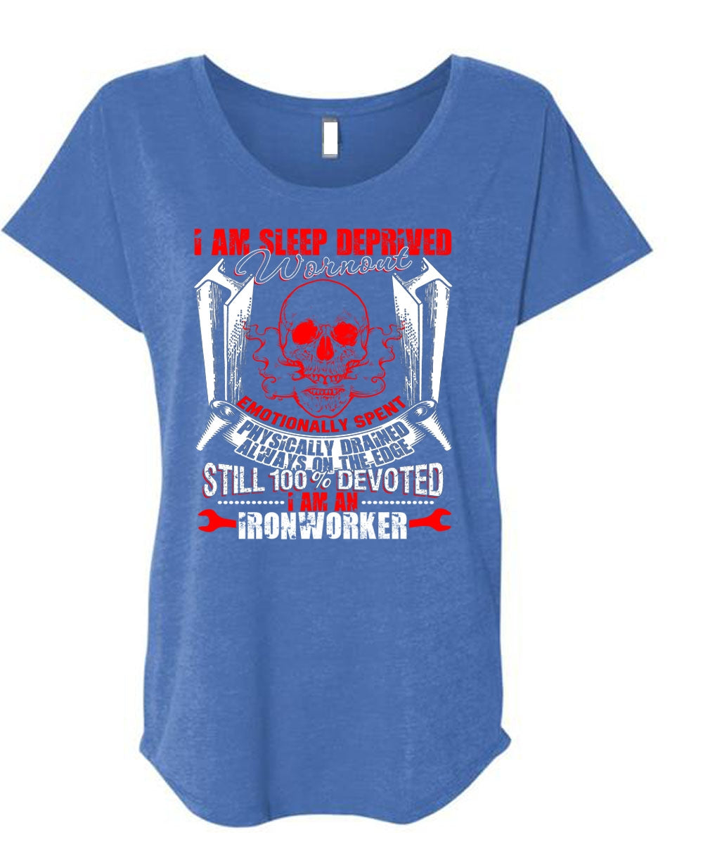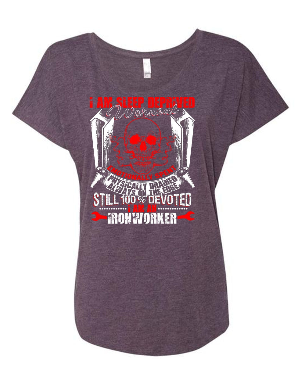I Am An Ironworker T Shirt, Sleep Deprived Worn Out T Shirt, Cool Shirt (Ladies' Triblend Dolman Sleeve)