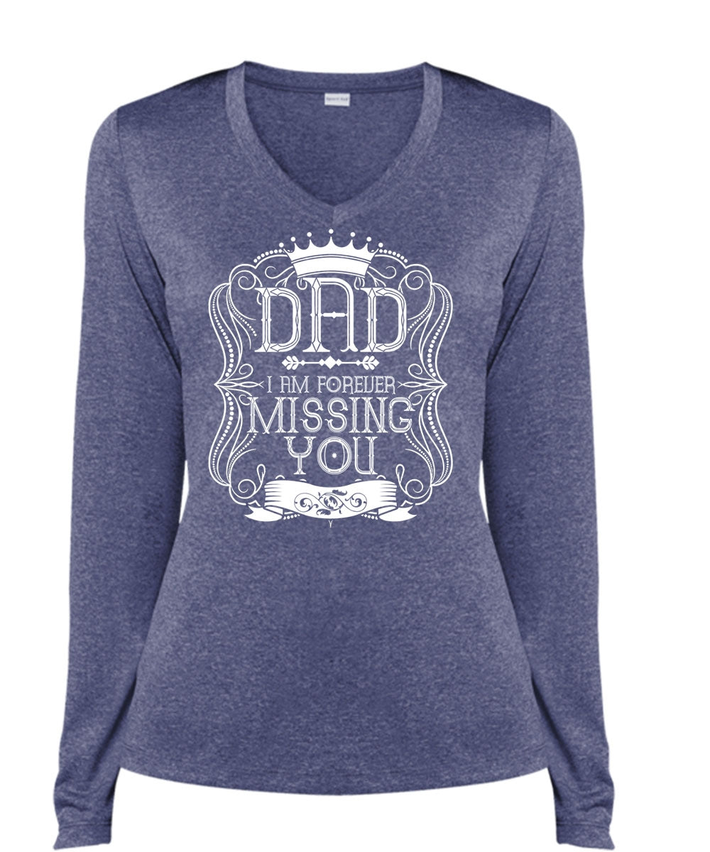 I Am Forever Missing You T Shirt, Being A Dad T Shirt, Cool Shirt (Ladies LS Heather V-Neck)