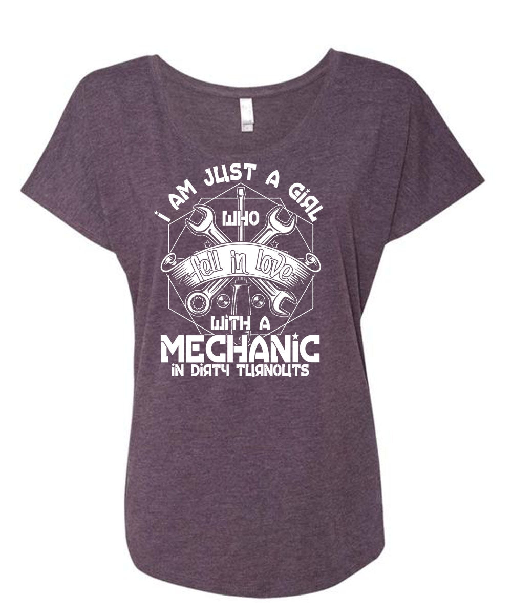 I Am Just A Girl T Shirt, Fell In Love With A Mechanic T Shirt, Cool Shirt (Ladies' Triblend Dolman Sleeve)
