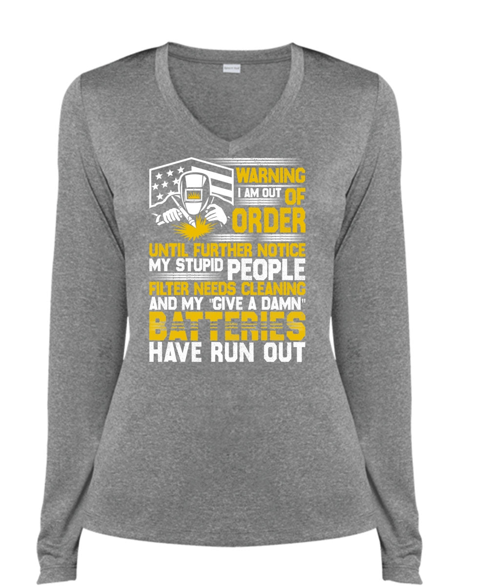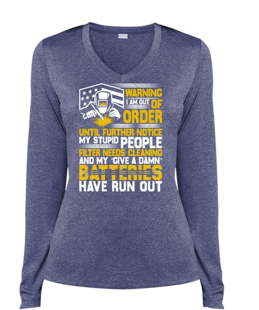 I Am Out Of Order T Shirt, Being A Welder T Shirt, Cool Shirt (Ladies LS Heather V-Neck)