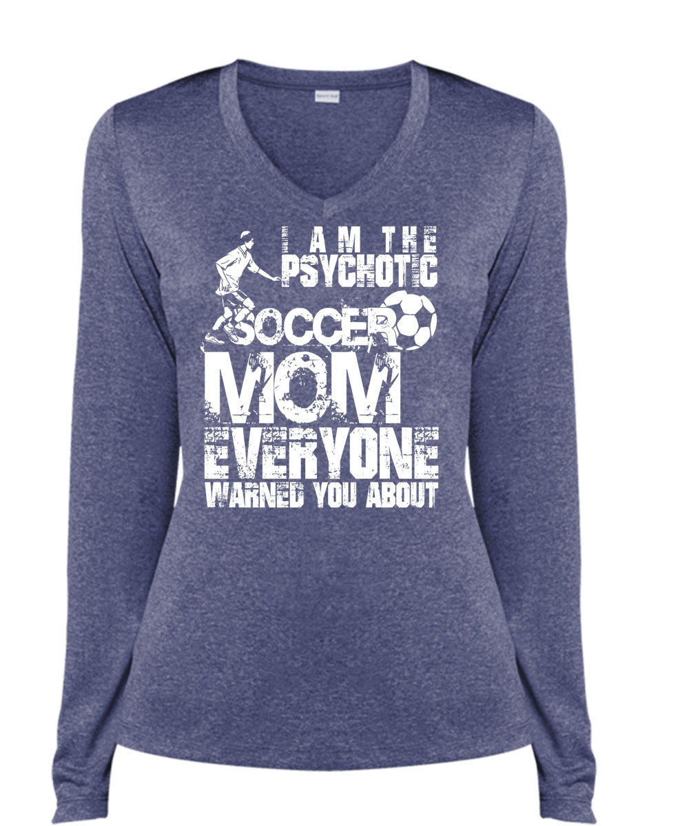 I Am The Psychotic Soccer Mom T Shirt, Being A Mom T Shirt, Cool Shirt (Ladies LS Heather V-Neck)