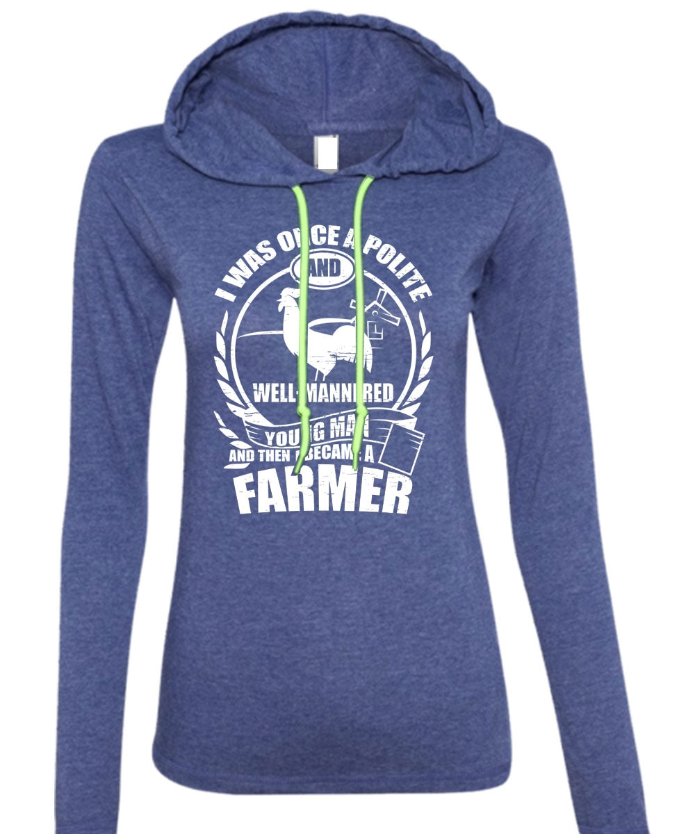I Became A Farmer T Shirt, Young Man T Shirt (Anvil Ladies Ringspun Hooded)