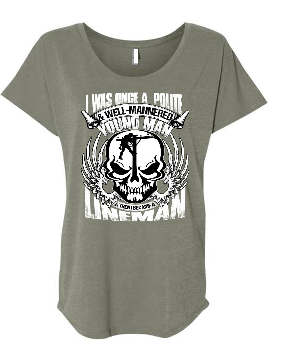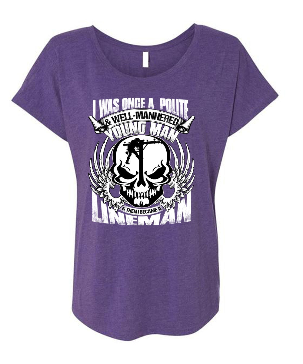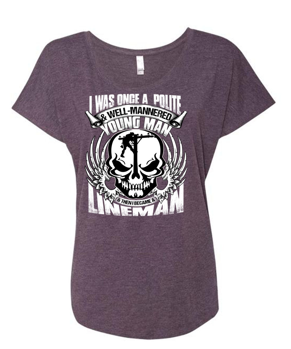 I Became A Lineman T Shirt, Young Man T Shirt, Cool Shirt (Ladies' Triblend Dolman Sleeve)