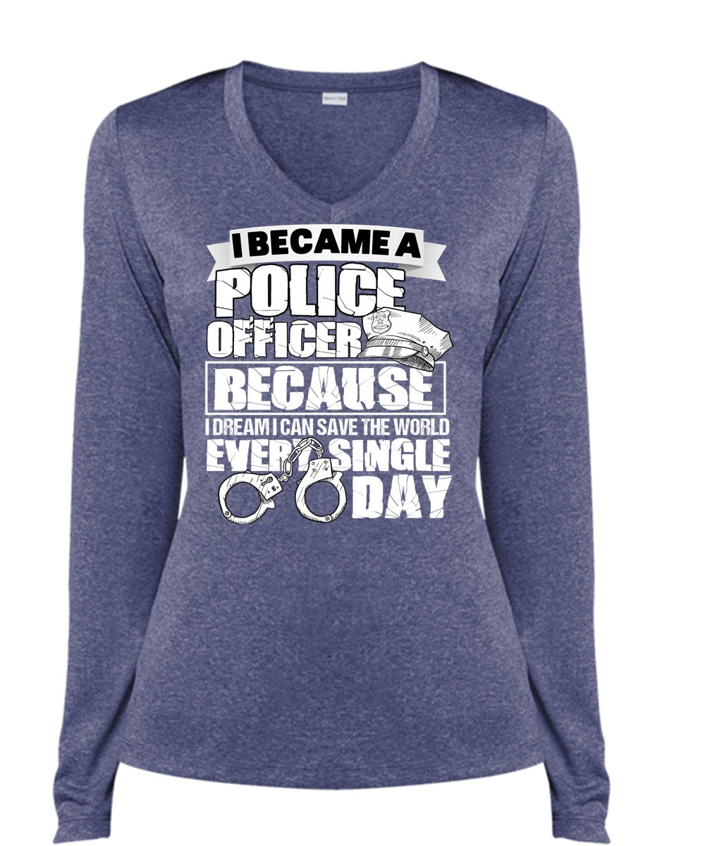 I Became A Police Officer T Shirt, Single Day T Shirt, Cool Shirt (Ladies LS Heather V-Neck)