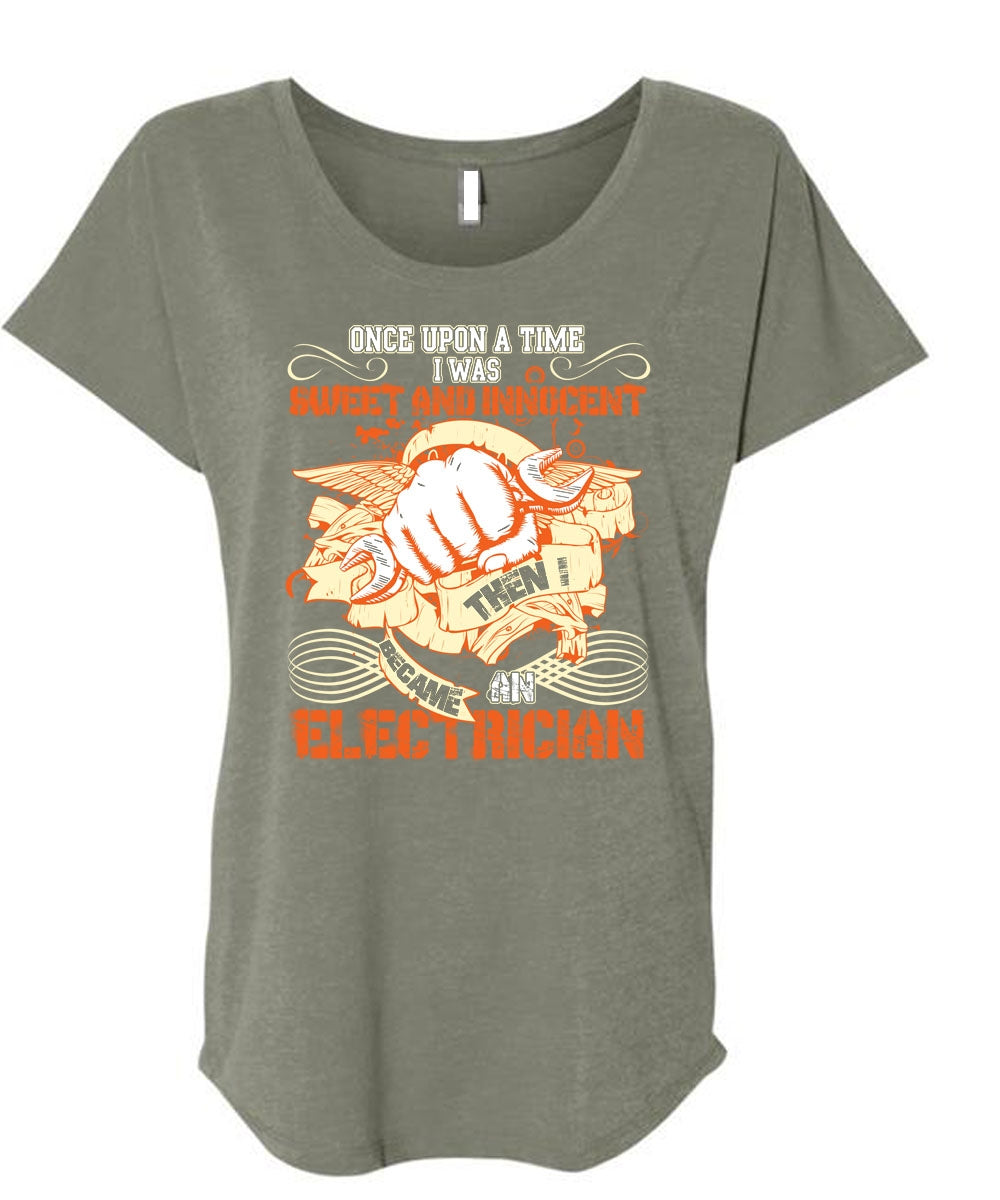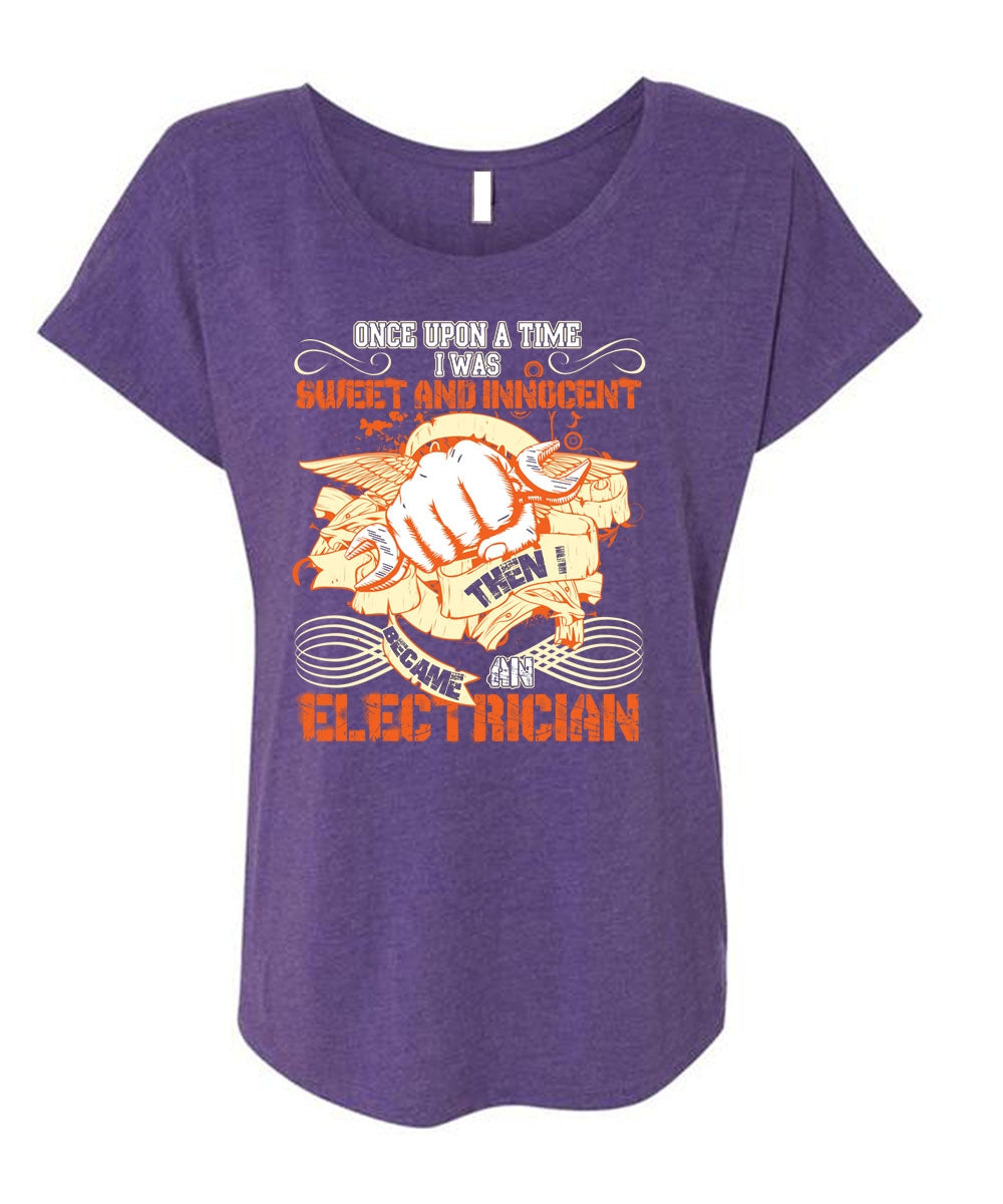 I Became An Electrician T Shirt, I Was Sweet And Innocent T Shirt, Cool Shirt (Ladies' Triblend Dolman Sleeve)