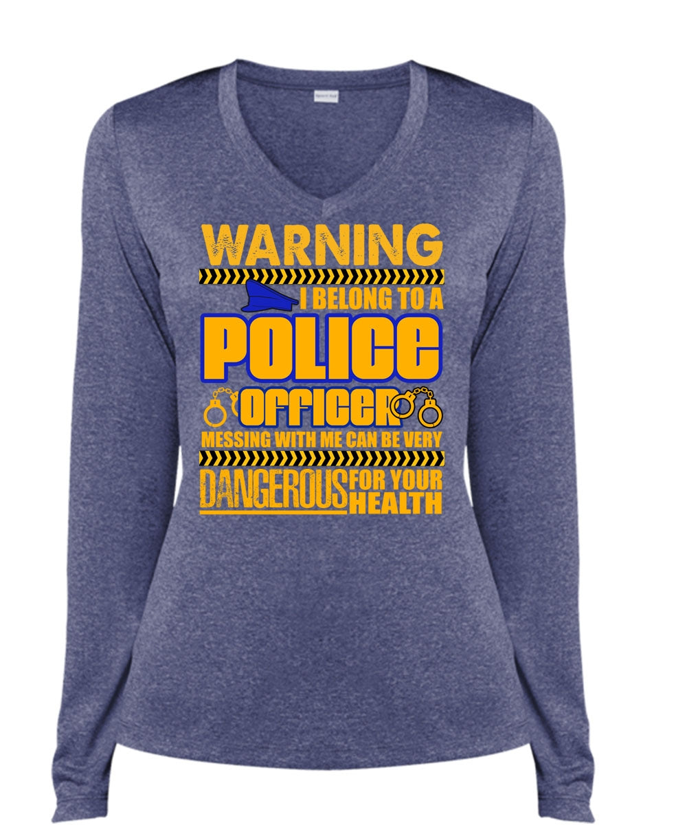 I Belong To A Police Officer T Shirt, Dangerous For Your Health T Shirt, Cool Shirt (Ladies LS Heather V-Neck)